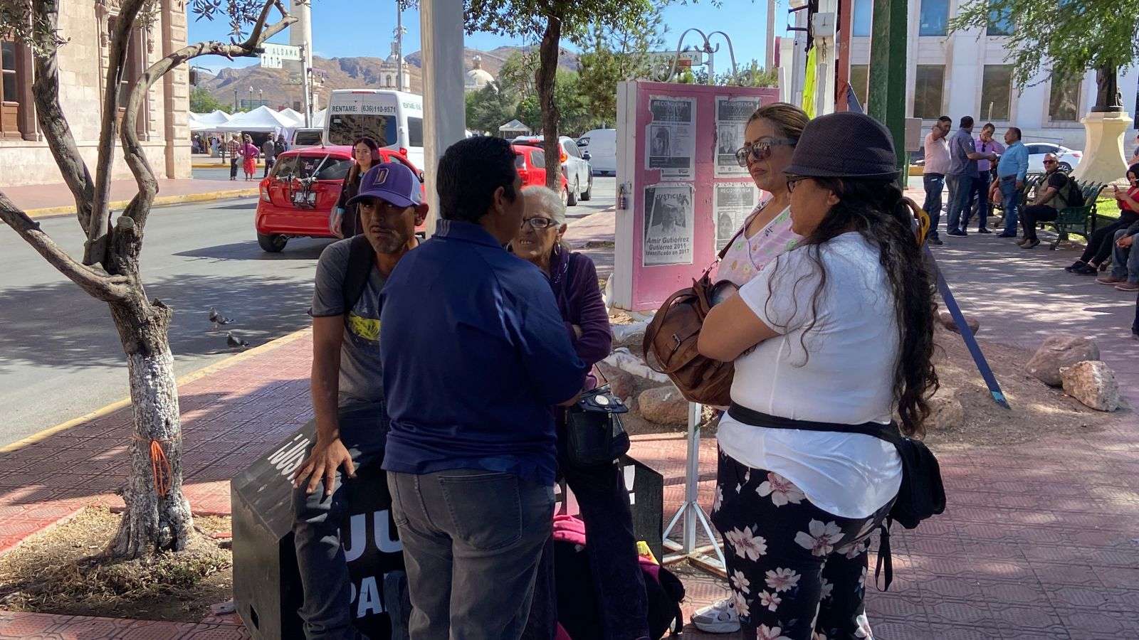 Chihuahua.- En la Plaza Hidalgo se concentraron vecinos de las colonias Punta Oriente, Vistas y Laderas de San Guillermo se reunieron para exigir una solución a las viviendas que les fueron vendidas y ahora les quieren quitar.