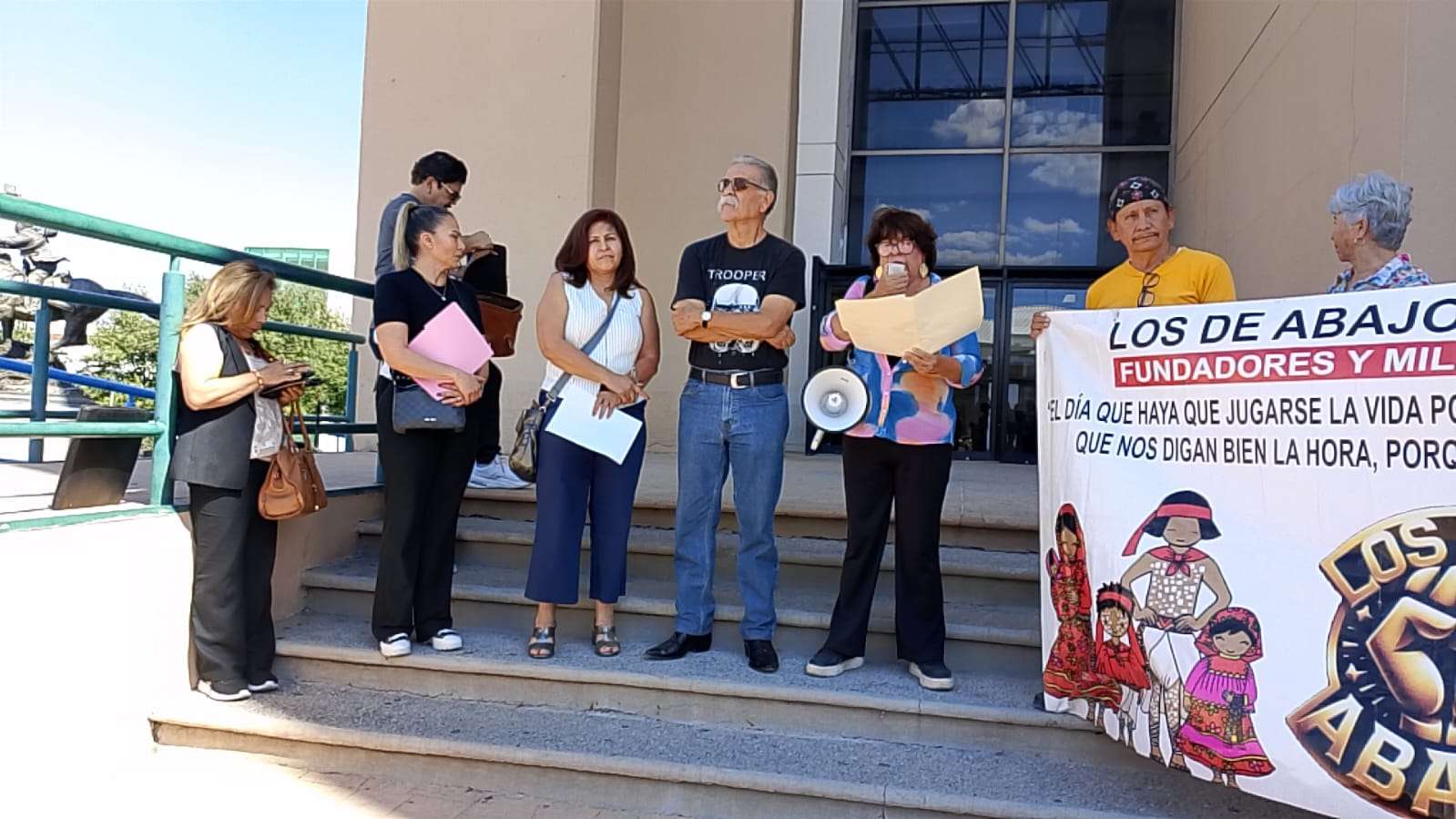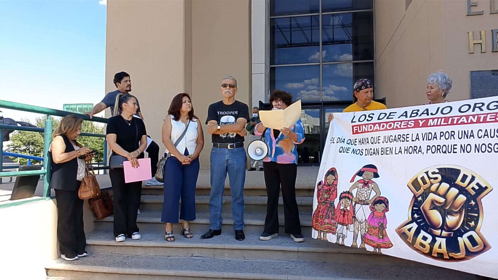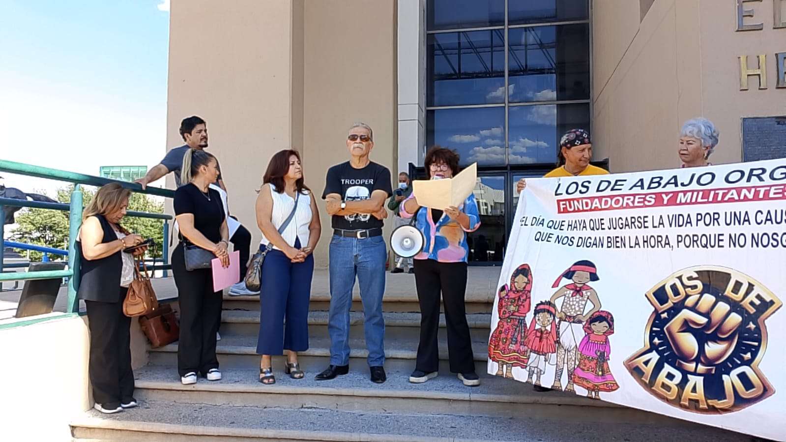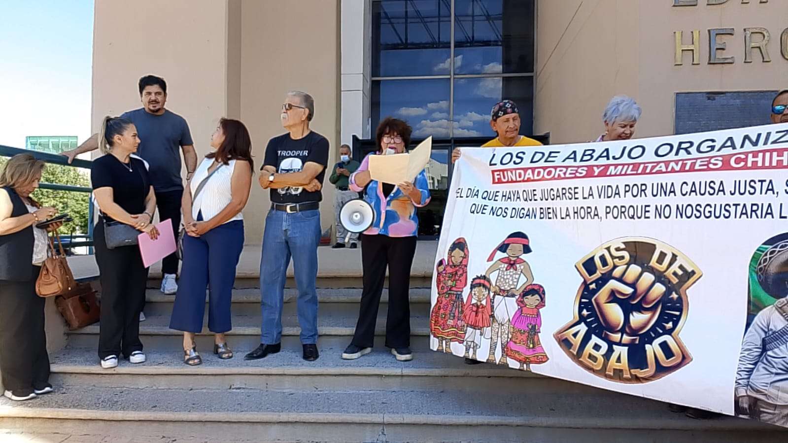 Chihuahua.- Integrantes de la asociación Los de Abajo, conformada por maestros de la SEECH, Sección 8, Sección 42 y UPNECH, se concentraron la mañana de este jueves frente a la Secretaría de Educación y Deporte para exigir atención a sus demandas.