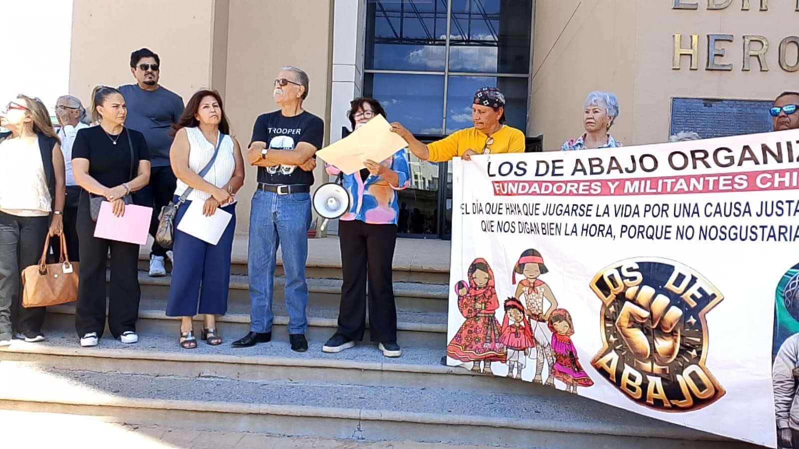La protesta surge tras señalar que la Comisión Estatal de Derechos Humanos (CEDH) otorgó una recomendación al exgobernador César Duarte, pese a su historial político marcado por acusaciones de peculado, mientras que a ellos no se les ha emitido ninguna recomendación que permita su reincorporación a los centros de trabajo.