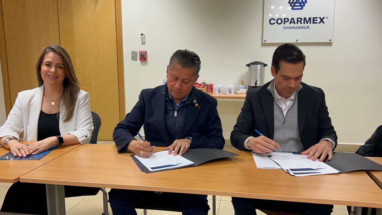 Chihuahua.- La Coparmex Chihuahua y el Tecnológico de Monterrey firmaron un convenio de colaboración que otorga beneficios de precios preferenciales en programas de educación continua y posgrados a empleados directos y socios activos de la organización empresarial.