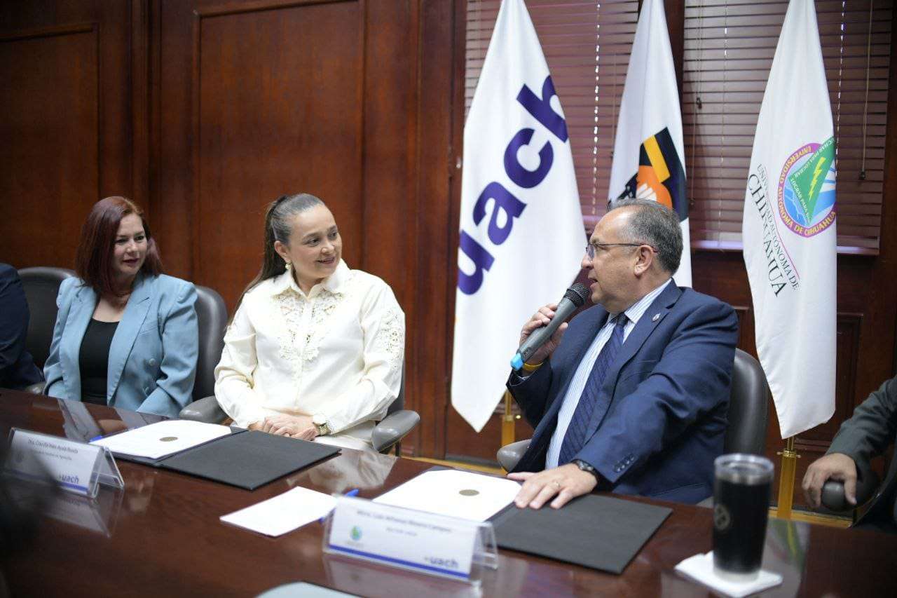 Chihuahua.- Con el objetivo de ampliar las oportunidades de formación internacional y enriquecer el perfil de los futuros ingenieros, el Rector de la Universidad Autónoma de Chihuahua (UACH), Mtro. Luis Rivera Campos firmó un convenio de colaboración con representantes de la Universidad Simón Bolívar (UNISIMÓN) de Barranquilla, Colombia.