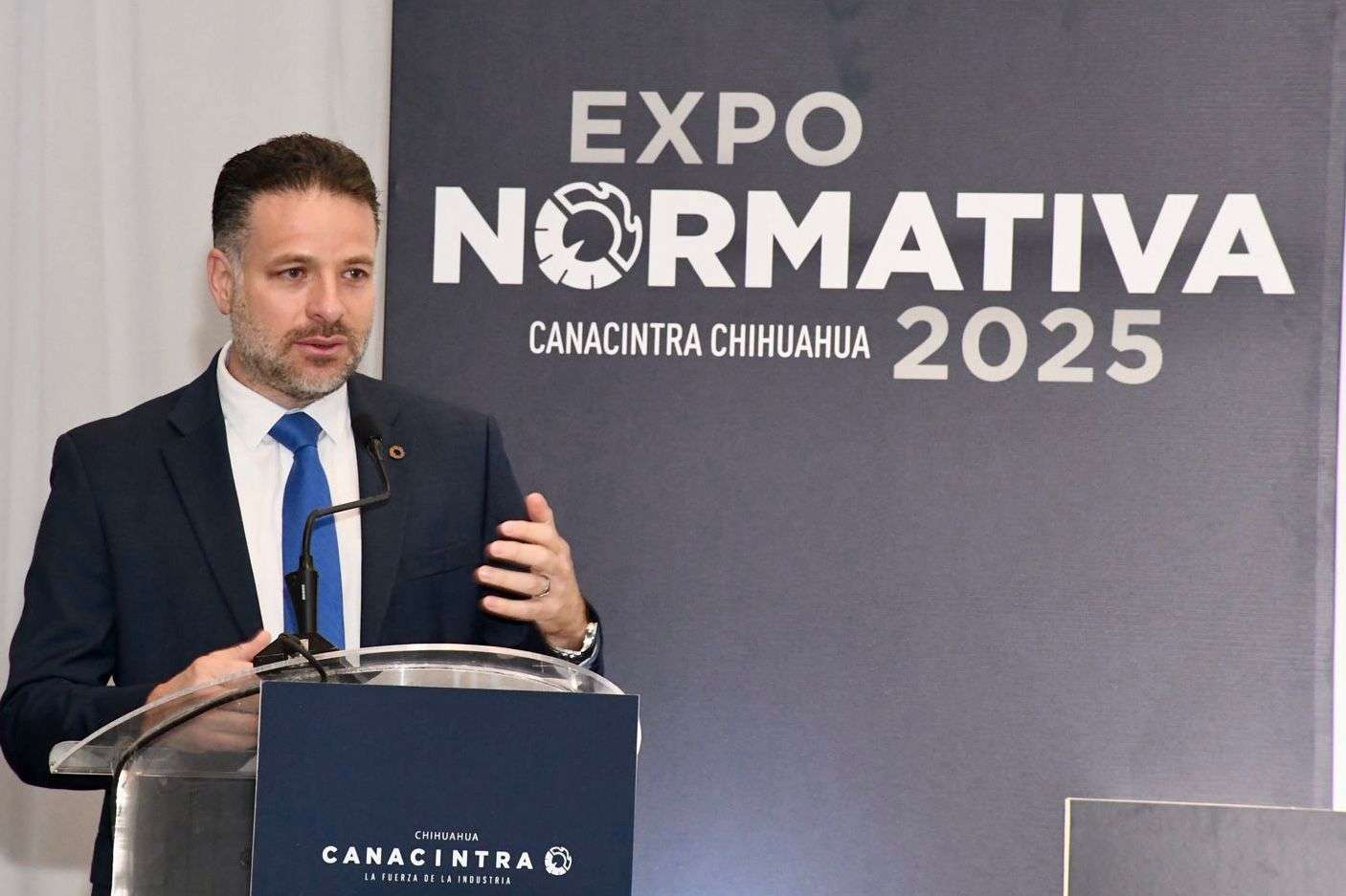 Chihuahua.- Con un llamado a transformar la sobrerregulación en una oportunidad de crecimiento, el presidente de Canacintra, Armando Gutiérrez Cuevas, inauguró la Expo Normativa 2025 en el salón Villarreal.
