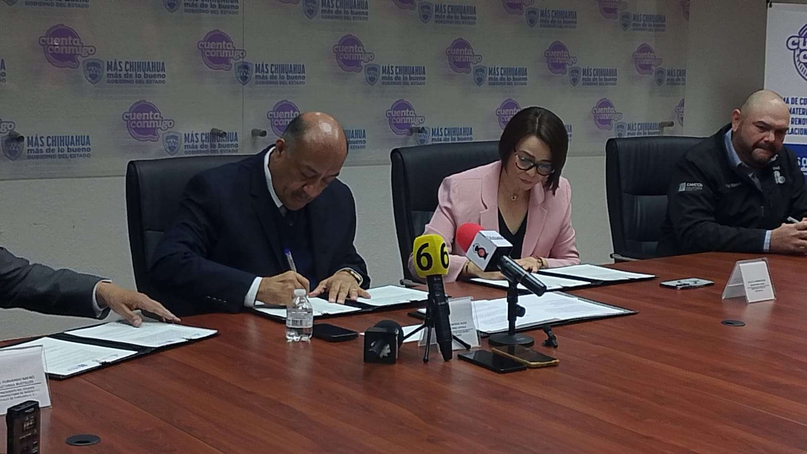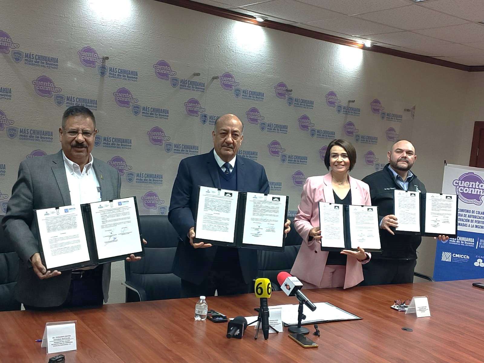 En la firma participaron Hugo Gutiérrez Dávila, titular de la Secretaría; Fernando Rafael Astorga Bustillos, presidente del Colegio Metropolitano de Ingenieros Civiles; y Diego Villanueva Robles, director del Colegio de Ingenieros de Cuauhtémoc. También acudió Sandra Elida Quintana Sáenz, directora estatal de Profesiones.