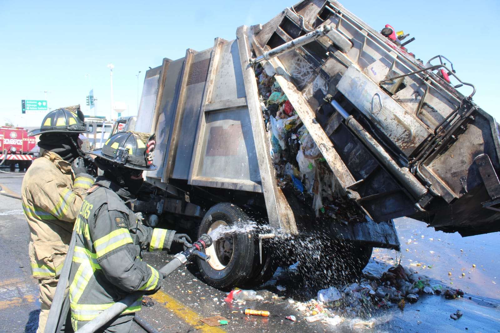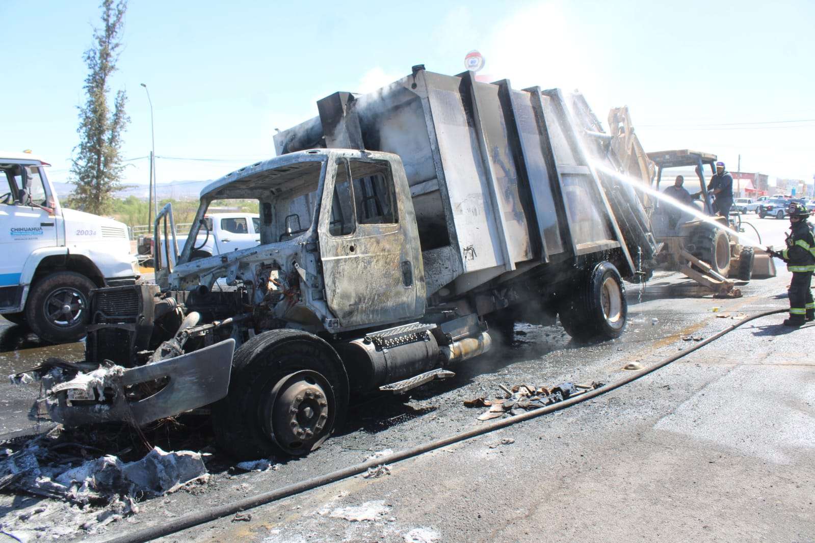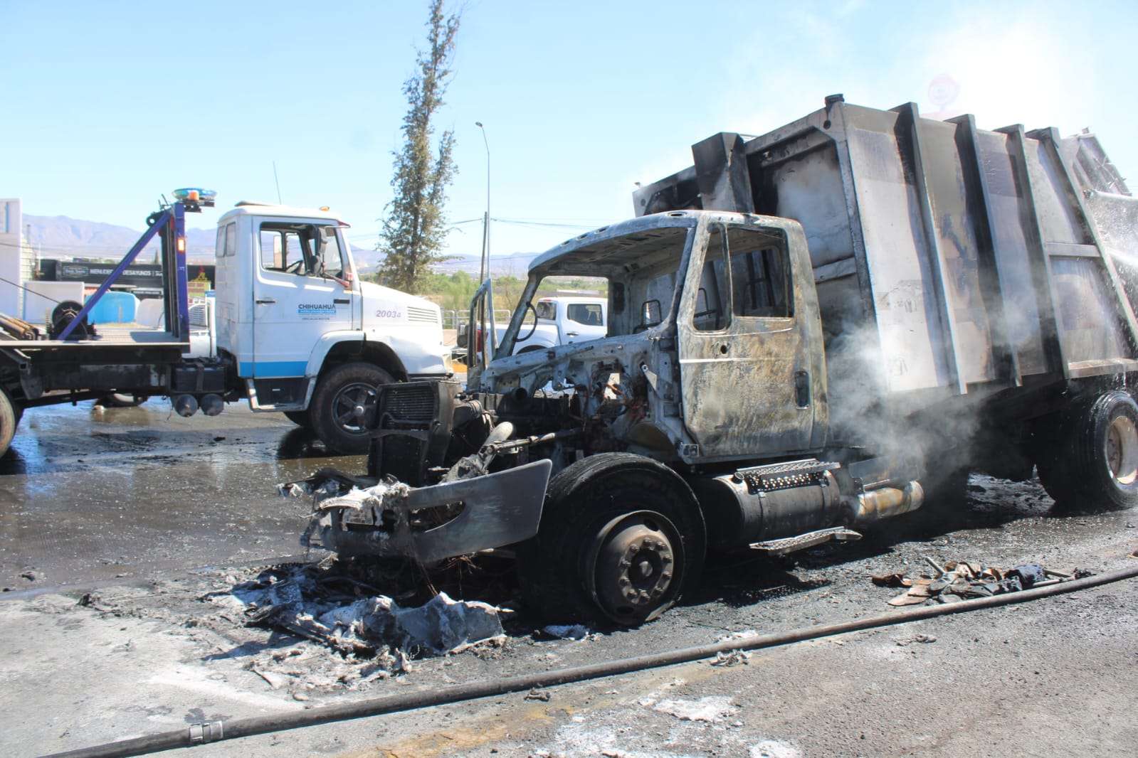 Chihuahua.- Sobre los hechos ocurridos este lunes 30 de septiembre, en qué un camión recolector de basura prendió en llamas en la intersección de la avenida Fuerza Aérea y carretera a Aldama, el Gobierno Municipal, a través de la Dirección de Servicios Públicos Municipales, informa que el incendio se derivó de un cortocircuito.