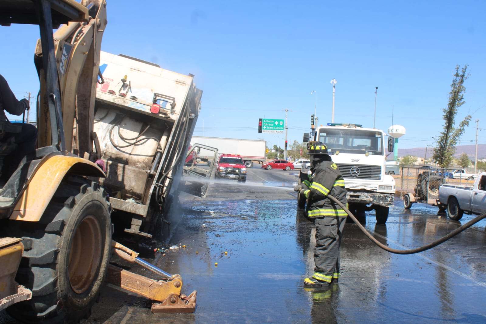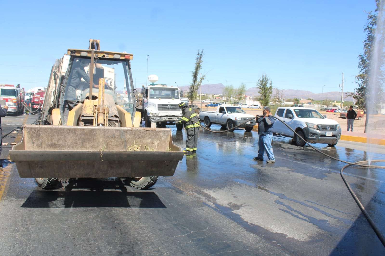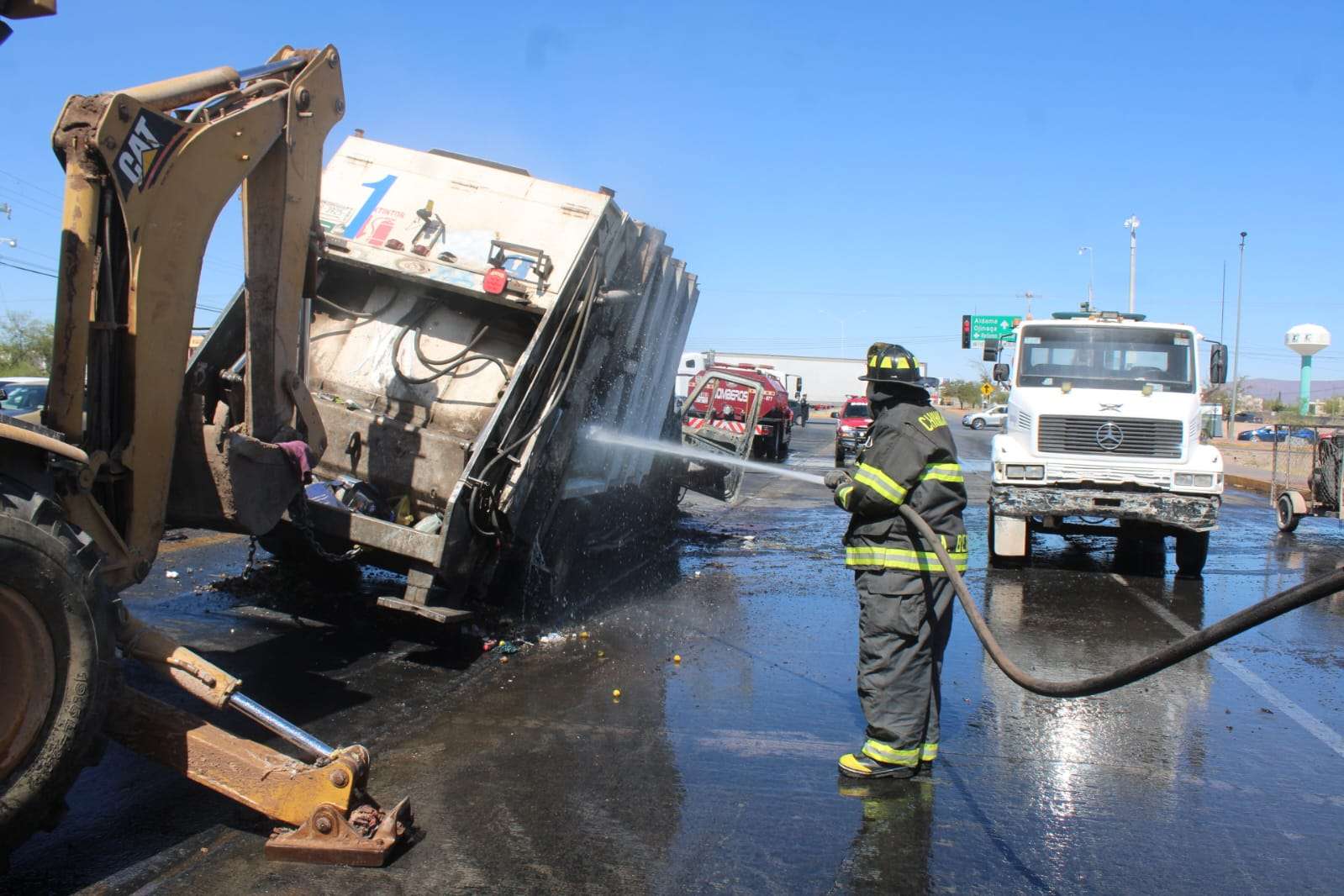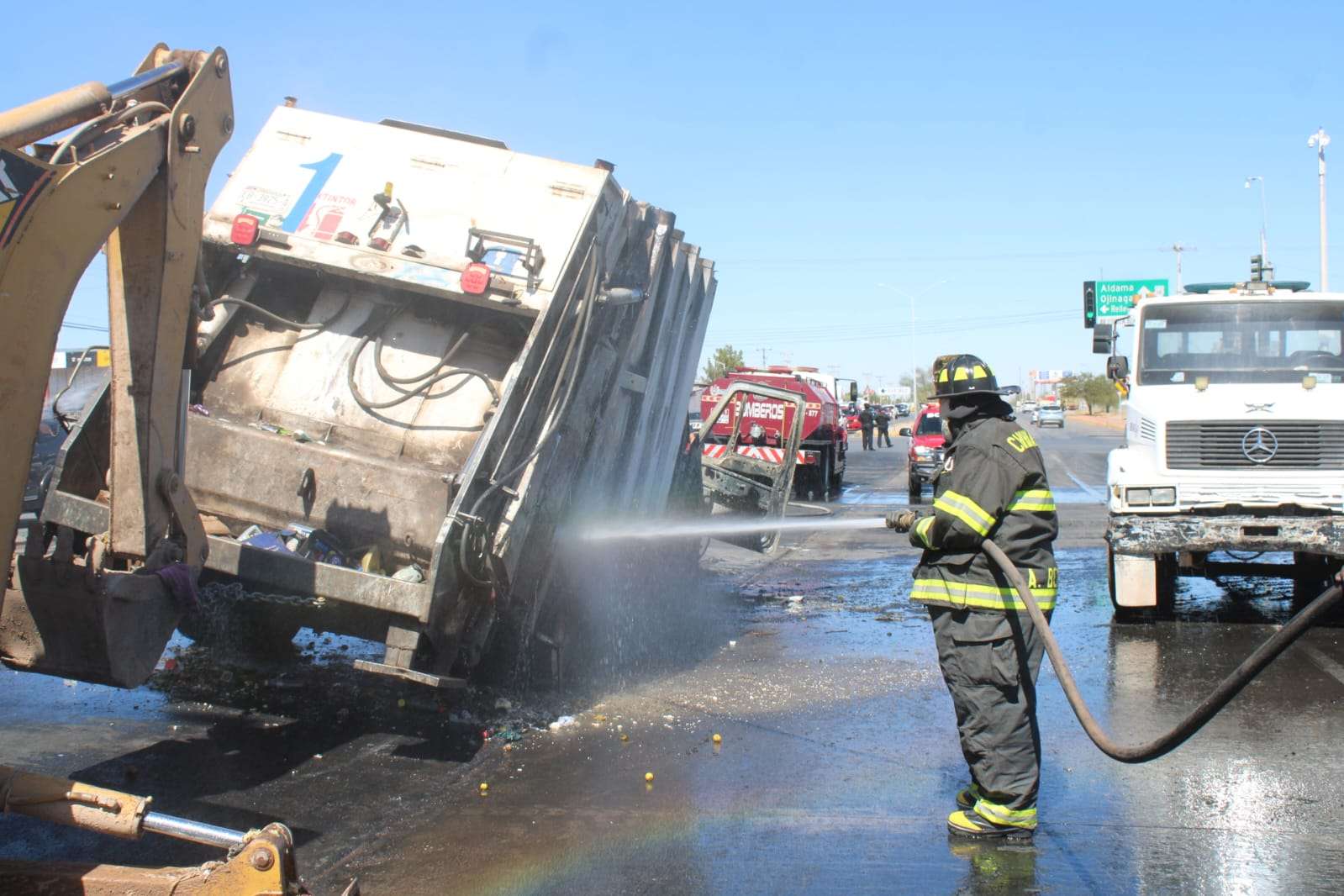 Chihuahua.- Sobre los hechos ocurridos este lunes 30 de septiembre, en qué un camión recolector de basura prendió en llamas en la intersección de la avenida Fuerza Aérea y carretera a Aldama, el Gobierno Municipal, a través de la Dirección de Servicios Públicos Municipales, informa que el incendio se derivó de un cortocircuito.