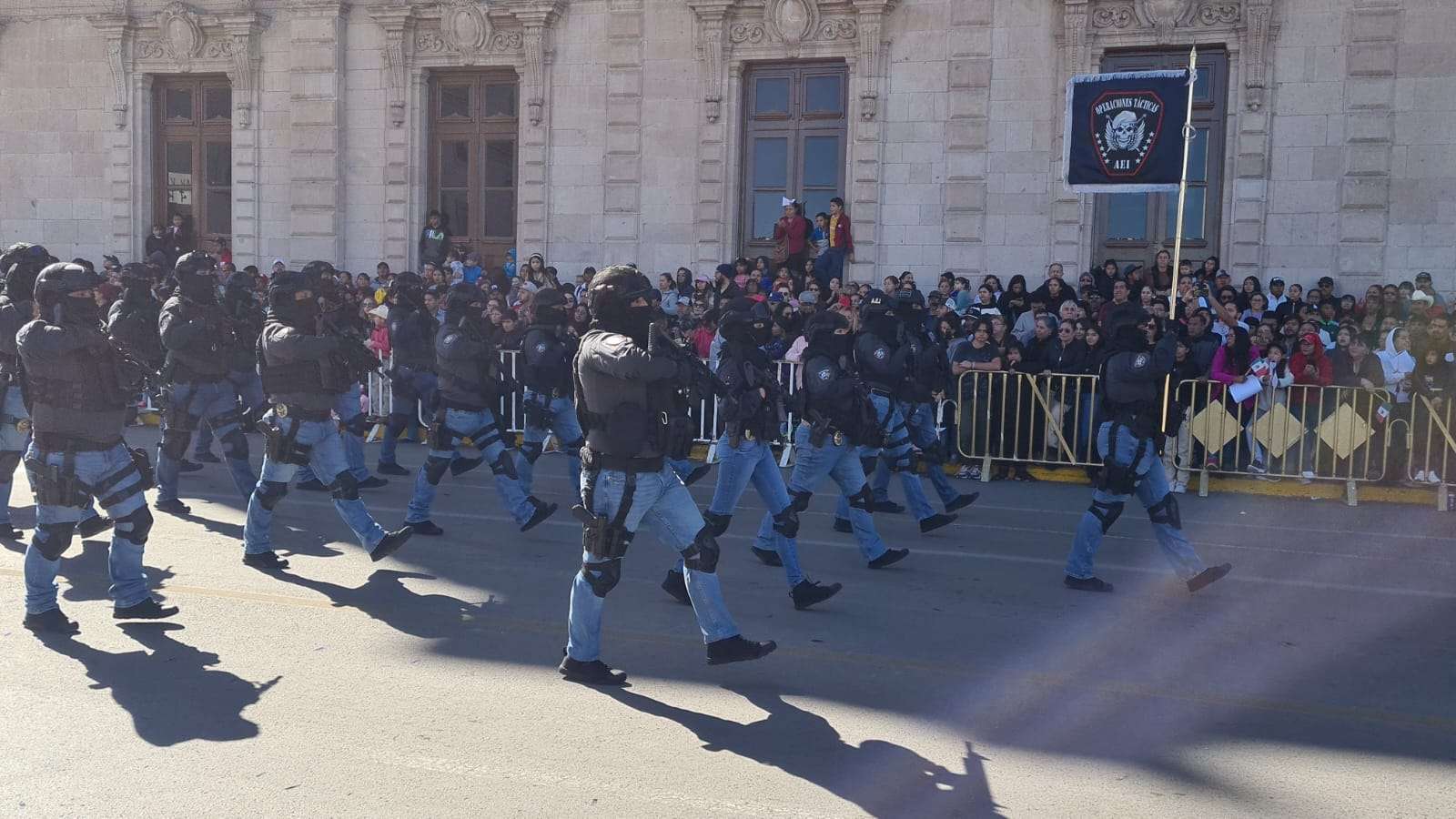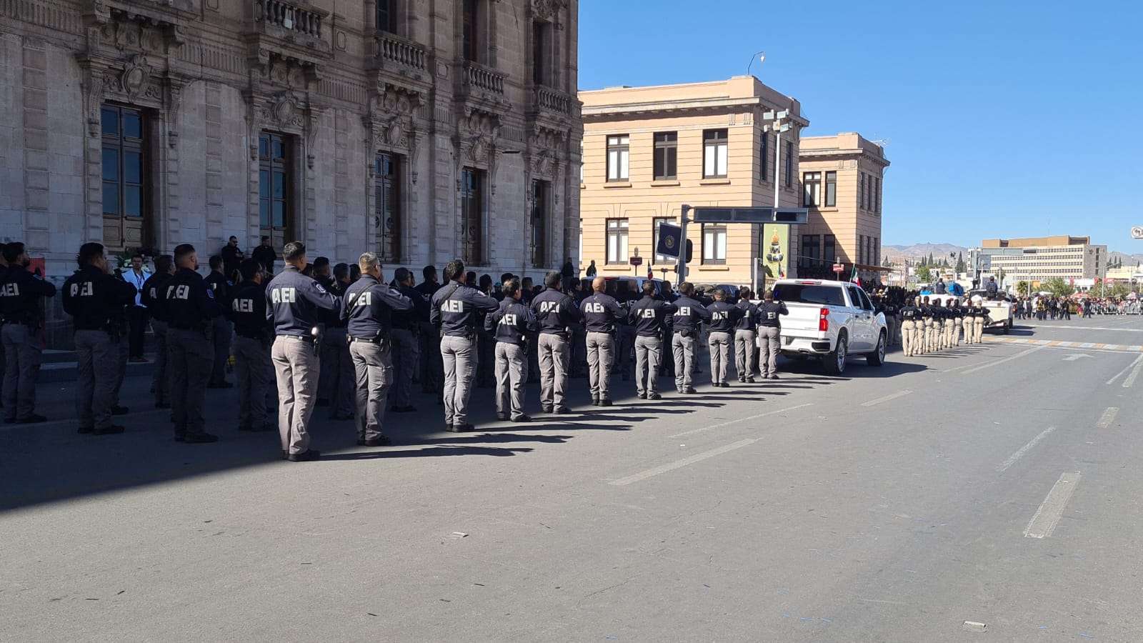 Elementos del escuadrón de élite los SWAT, así como cadetes de la escuela de la Policía Estatal, elementos caninos del grupo K-9, y el escuadrón de motociclistas de la Policía Vial.