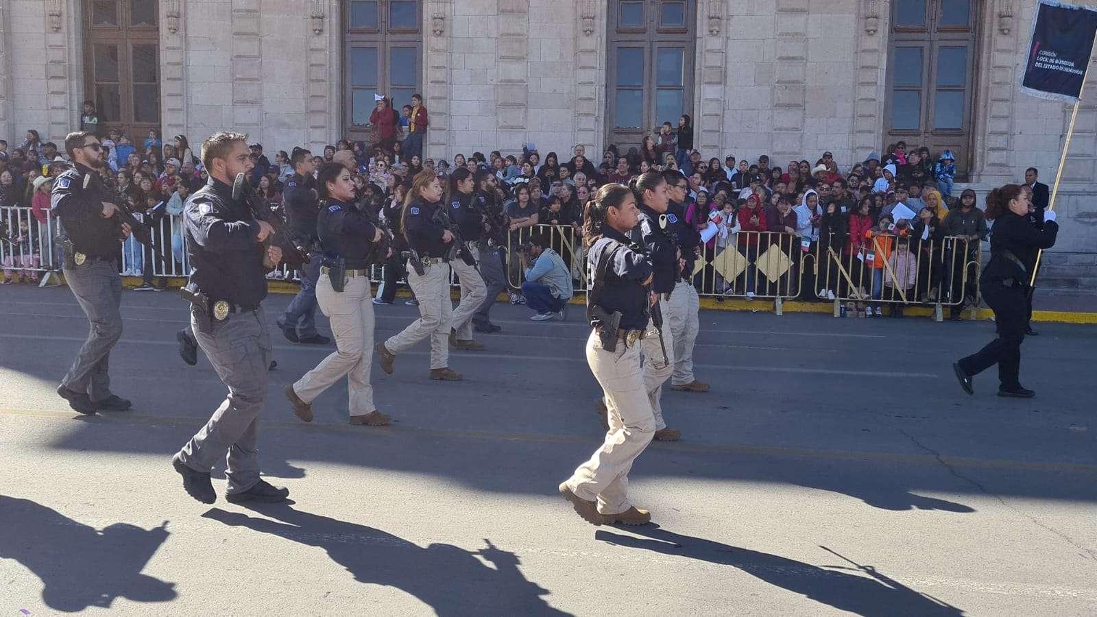 Chihuahua.- El contingente de la Fiscalía General del Estado realizó su recorrido ante más de 8 mil personas que se dieron cita en las gradas y de pie y que aplaudieron el paso del contingente.