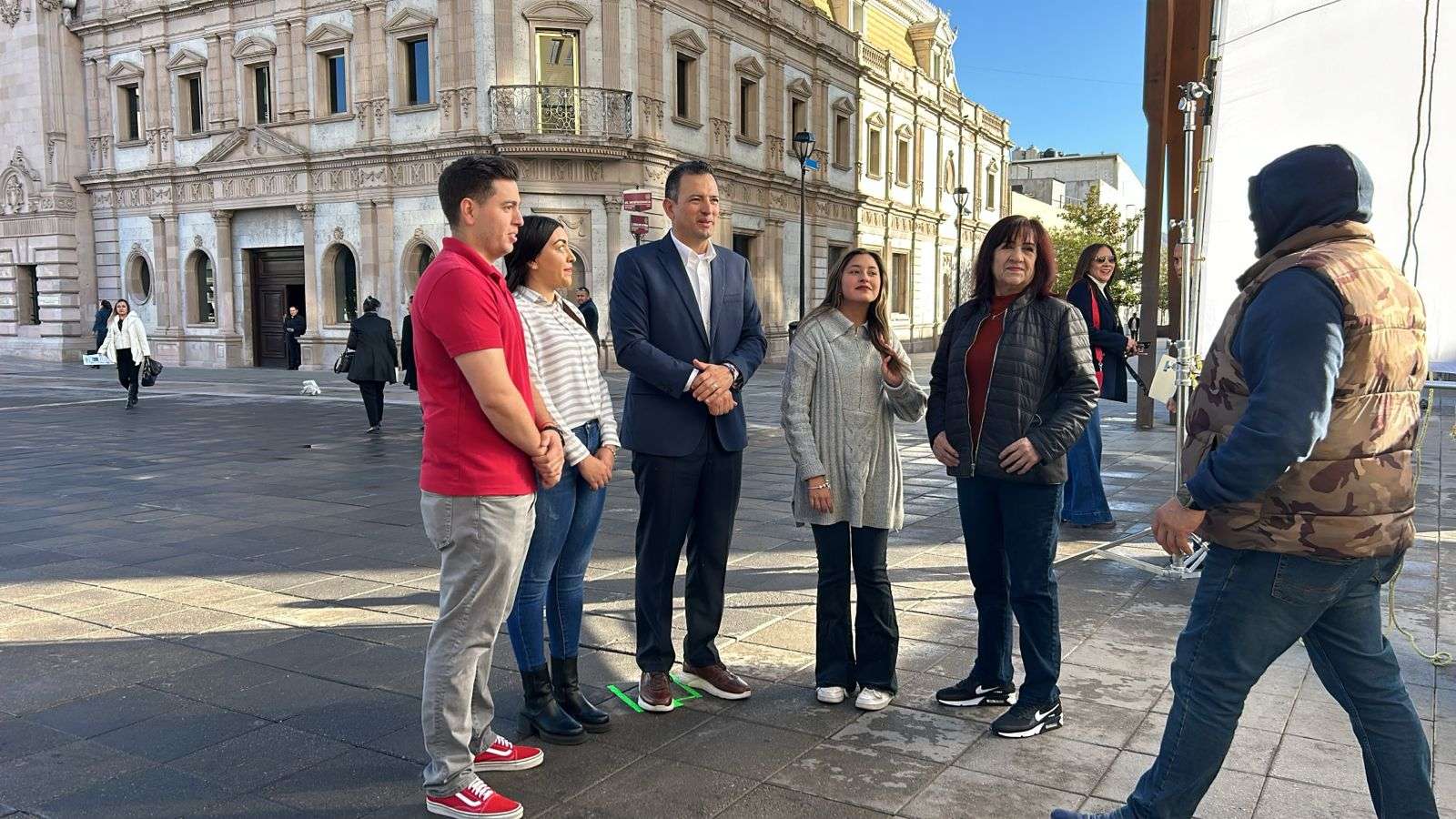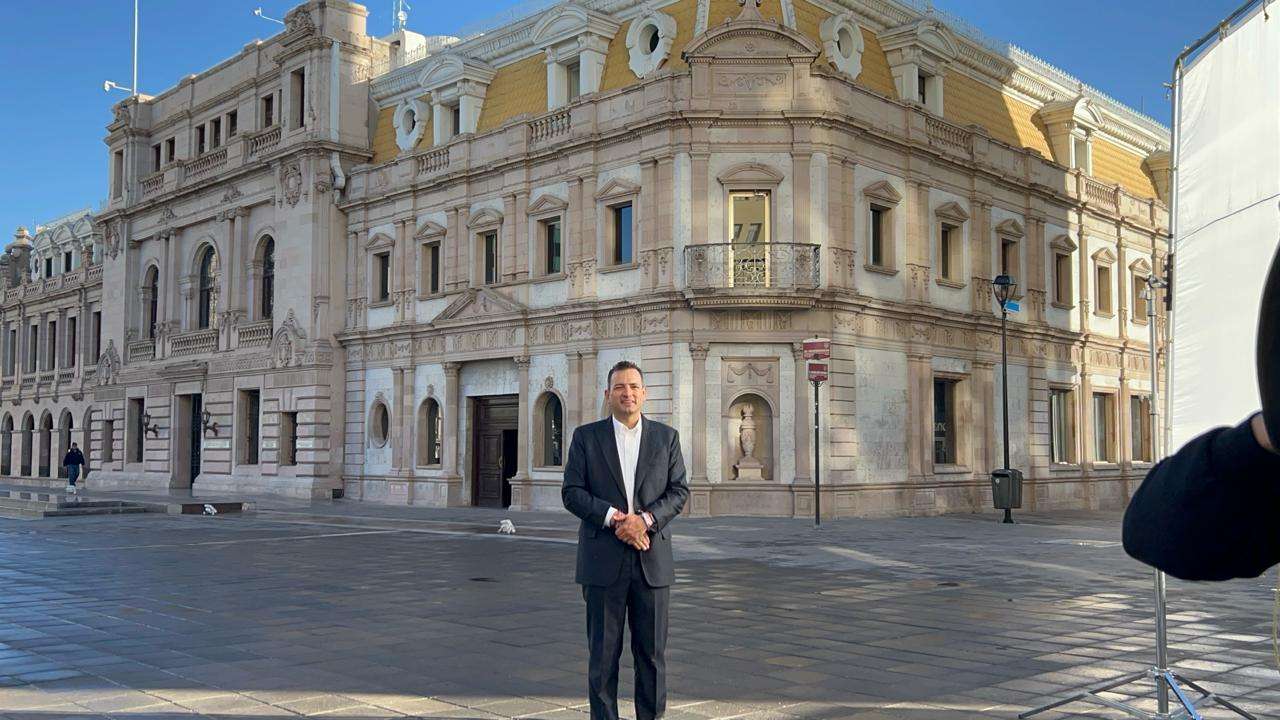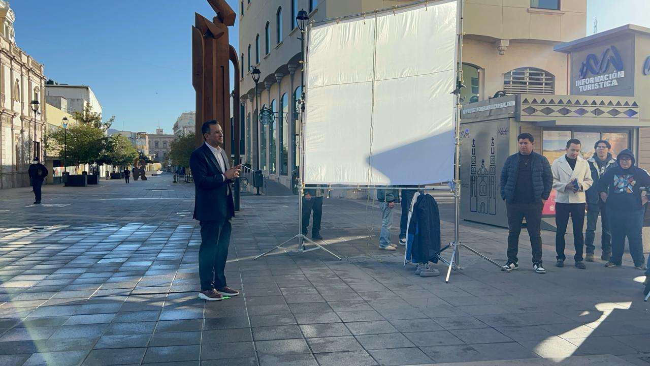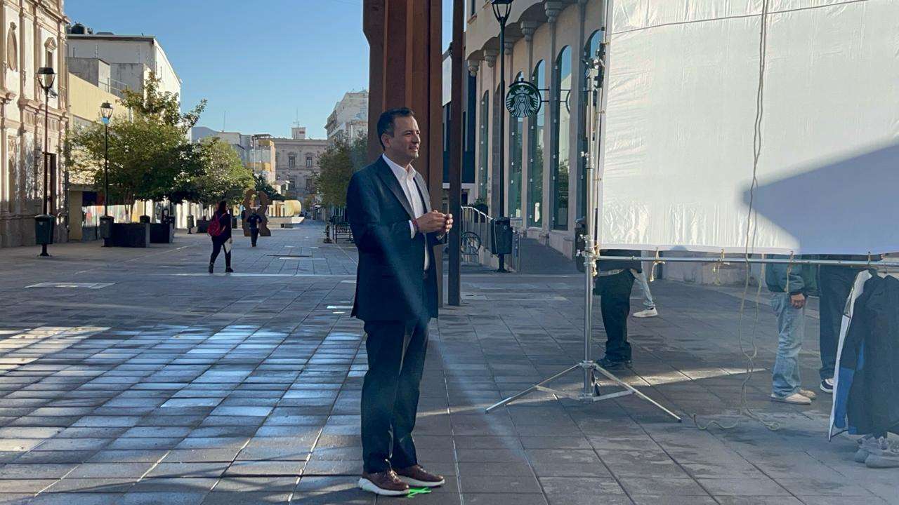 Marco Bonilla acudió junto con su equipo a la Plaza de Armas donde además de saludar a algunas personas, realizó la grabación del mensaje que dirigirá a los electores para el arranque de su campaña.