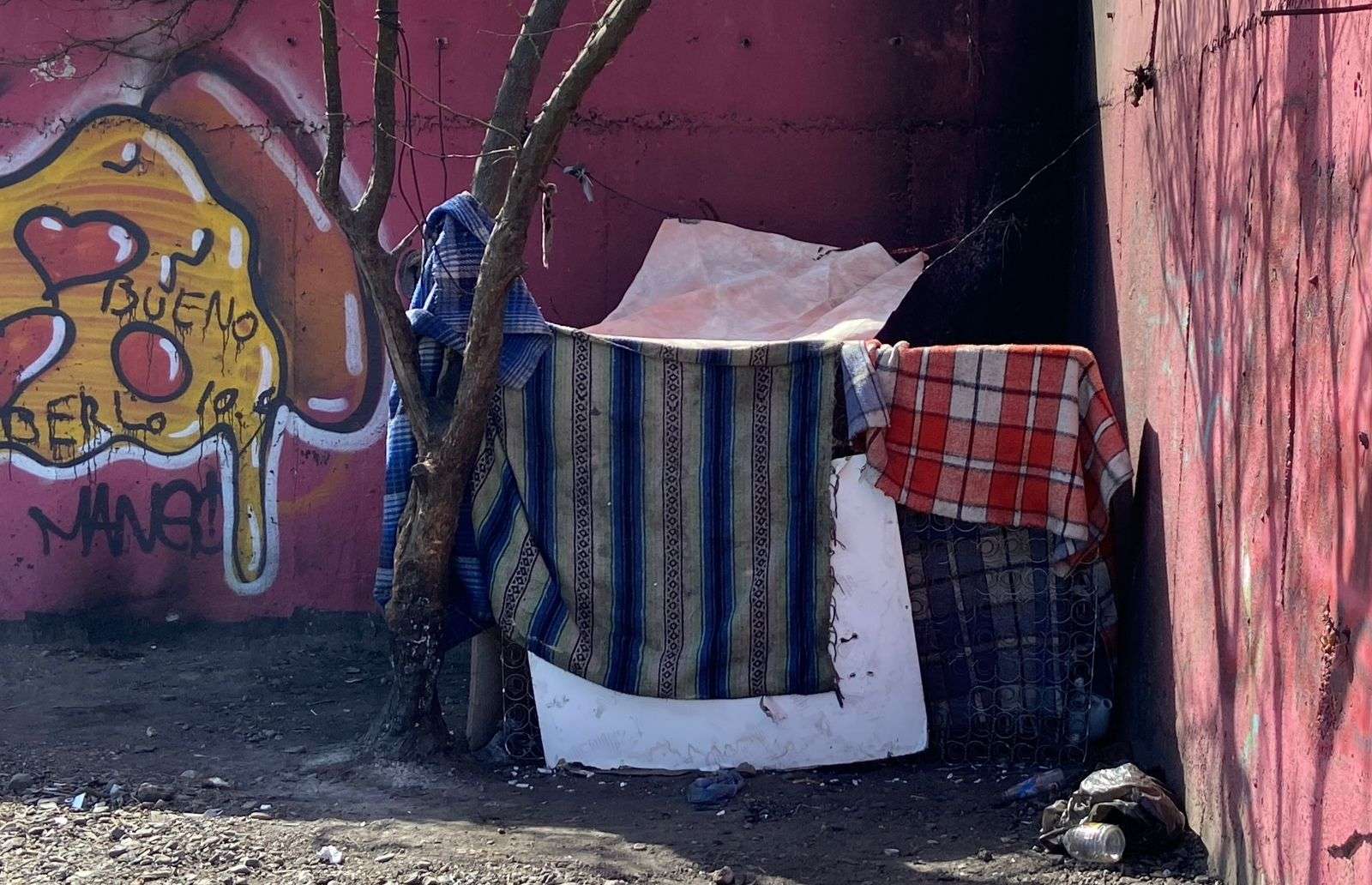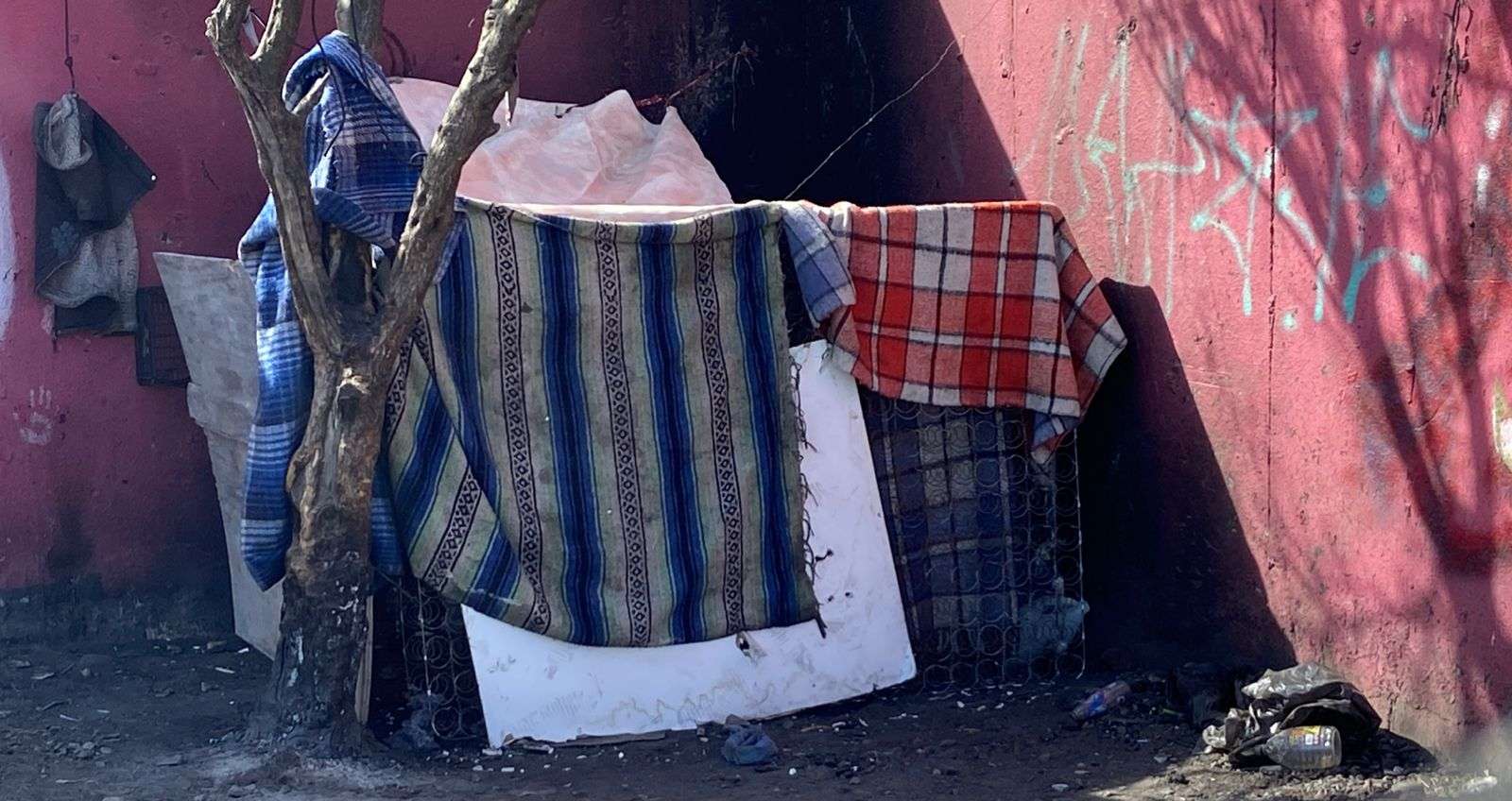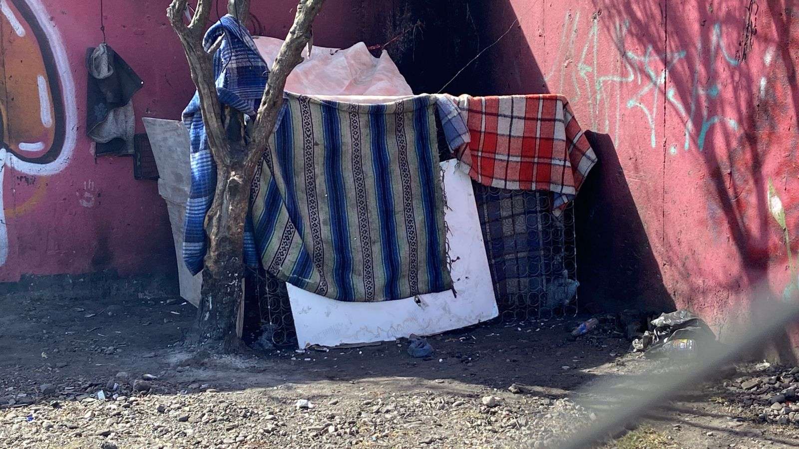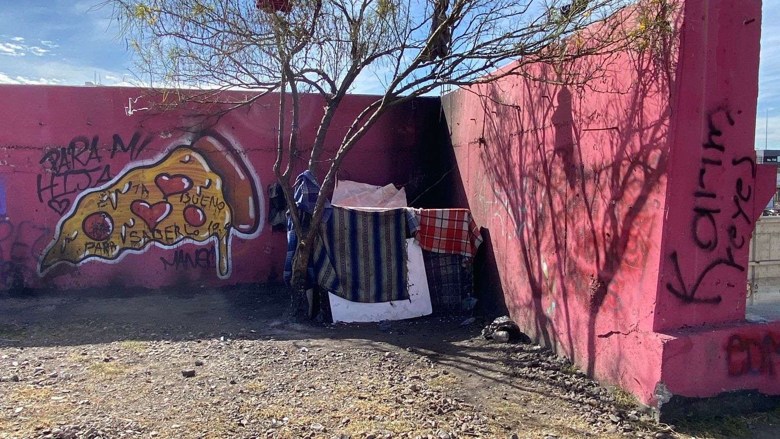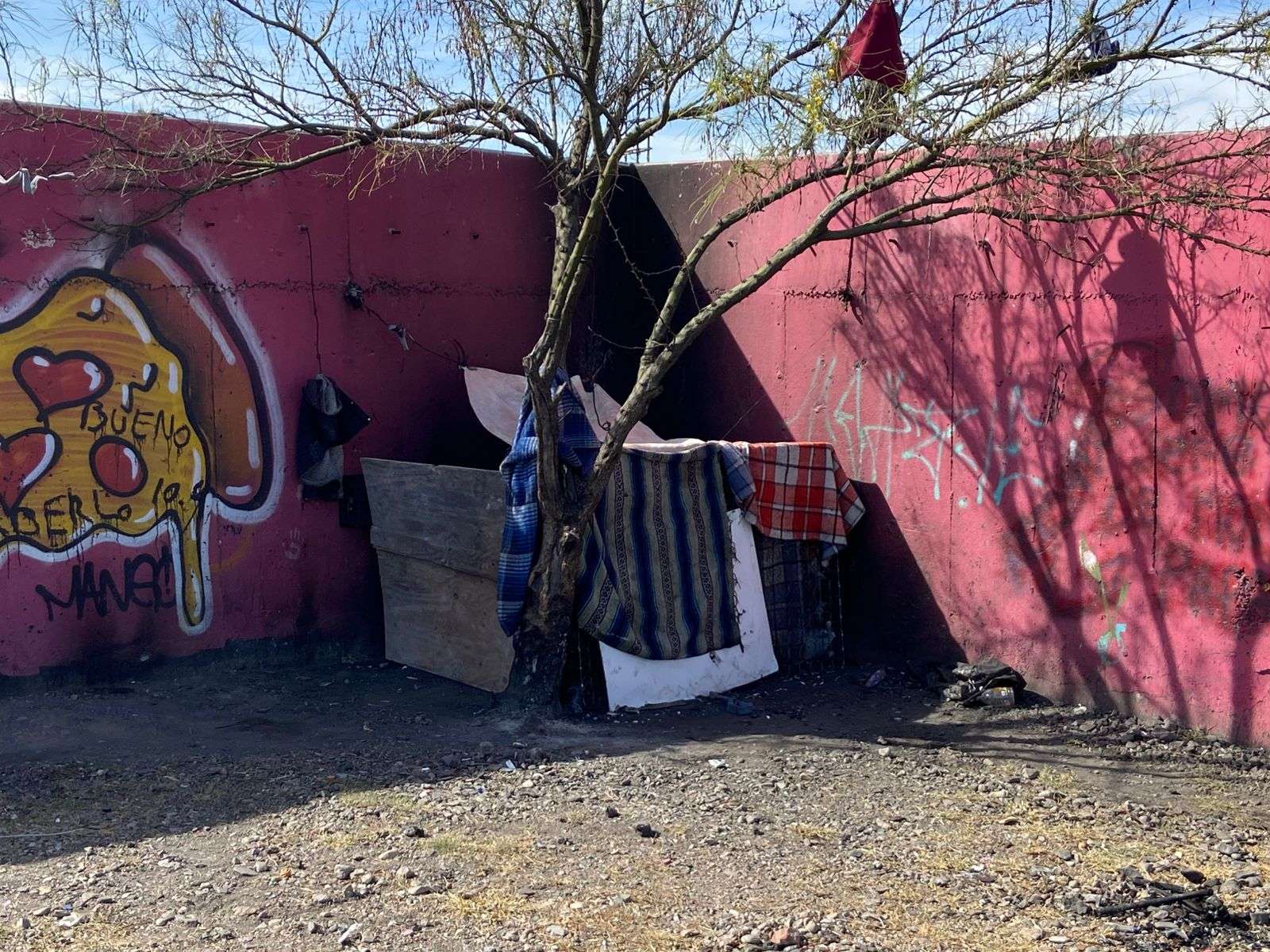 Chihuahua.- Rodrigo Nuñez Miranda, una persona en situación de calle, construyó una vivienda improvisada con cobijas, el tambor de un colchón y algunas tablas, junto al conocido “pantano de Shrek” en la avenida Carranza, casi esquina con Niños Héroes.