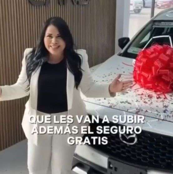 En el video, Monge aparece sonriente mostrando una camioneta Mazda color blanca, mientras relata su experiencia al adquirir el vehículo.