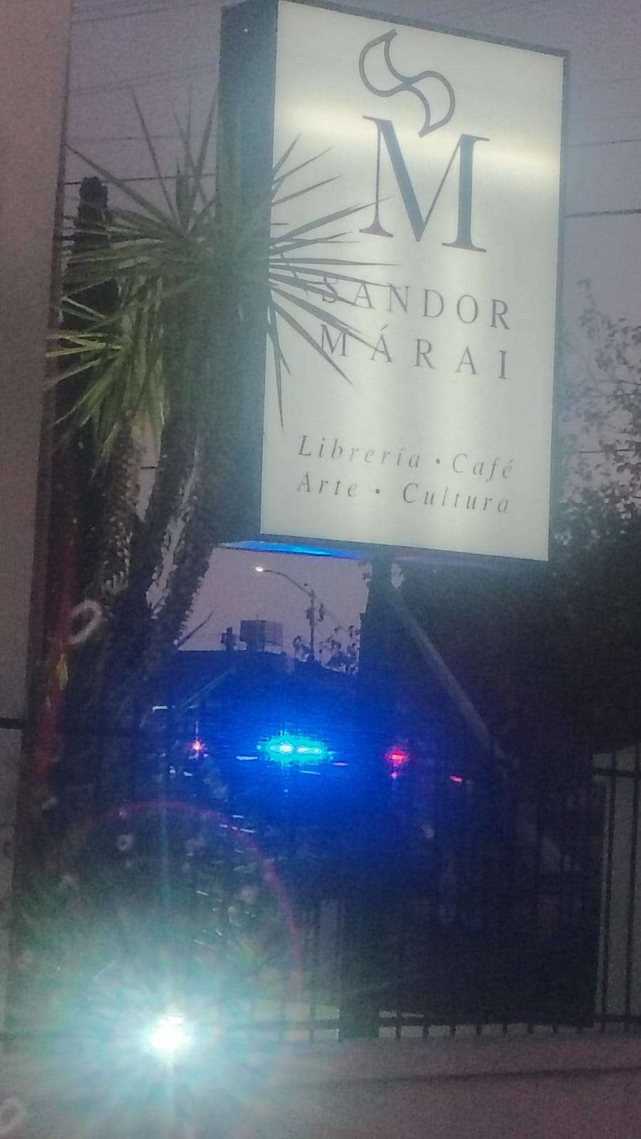 Chihuahua.- Esta tarde, policías municipales se apostaron afuera de la librería del exgobernador Javier Corral.
