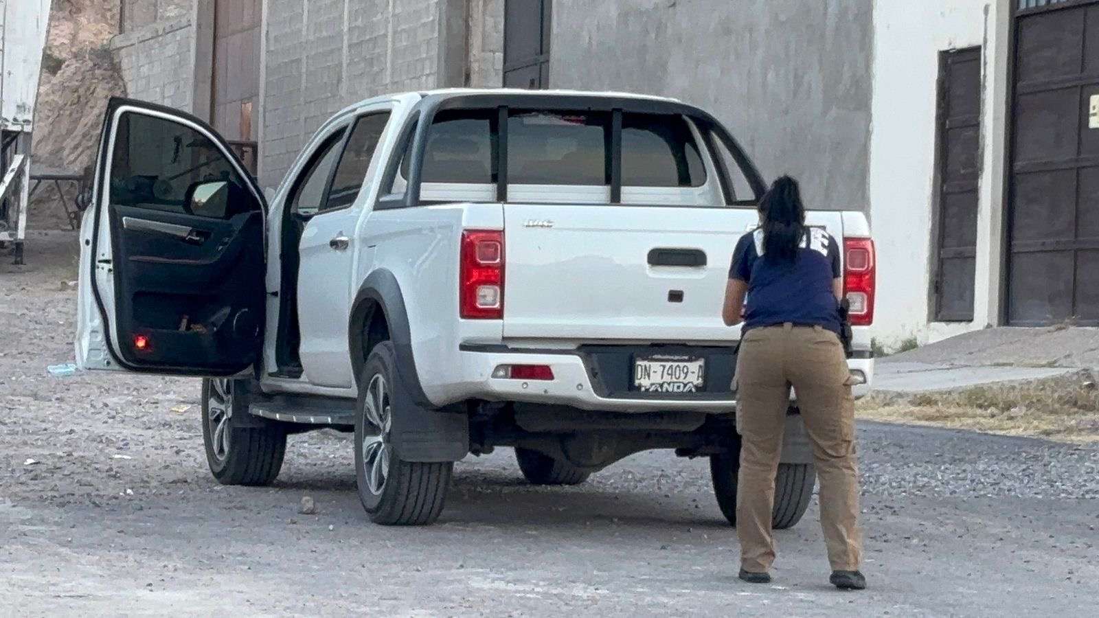 Chihuahua.- El segundo vehículo, baleado fue una camioneta pick up Frision Hilux de reciente modelo, el cual fue encontrado en la calle Catedral del Estado de Chihuahua, pero de la colonia La Haciendita.