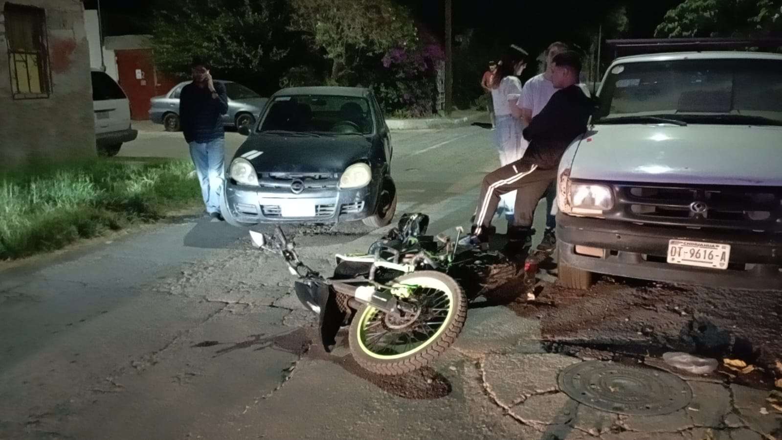 Chihuahua.- El conductor de un vehículo Chevrolet Monza circulaba sobre la calle Arturo Sandoval y al llegar al cruce con la calle Jacinto Canek omitió su alto impactando al conductor de una motocicleta.