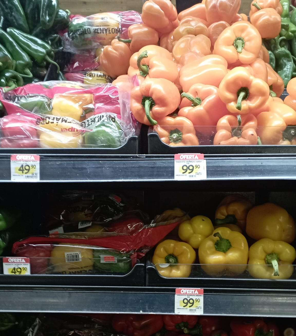 En un intento por ofrecer alternativas más asequibles, estas tiendas han comenzado a comercializar el pimiento morrón proveniente de Estados Unidos a un precio más accesible de 49 pesos por tres piezas.