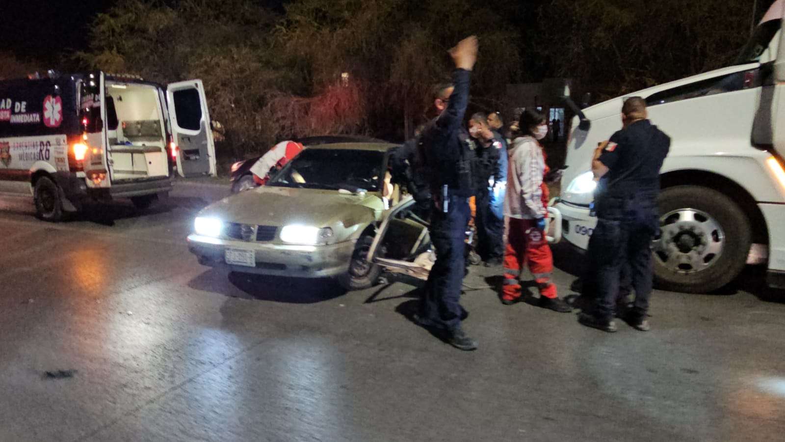 Al lugar arribaron paramédicos de la Policía Estatal y de la Cruz Roja Mexicana para brindar los primeros auxilios. Sin embargo, los rescatistas informaron que la mujer se mostró intransigente y se negó en repetidas ocasiones a descender del vehículo para recibir atención médica.