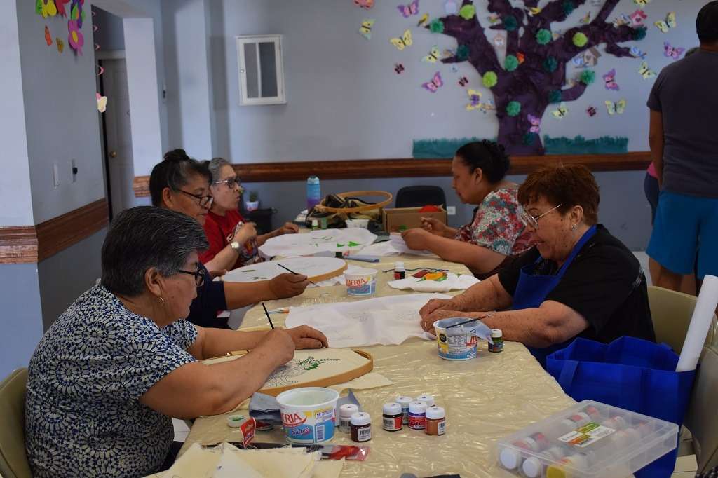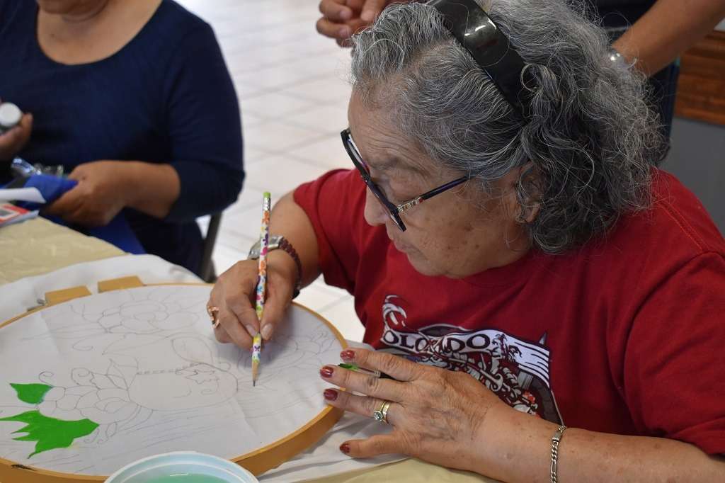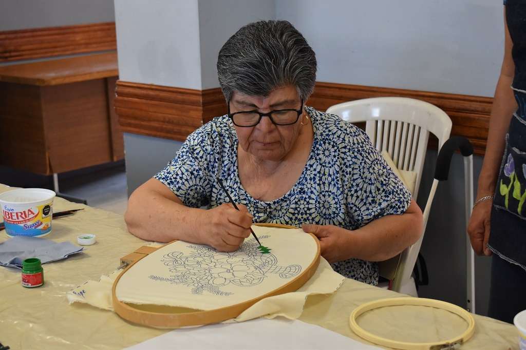 Chihuahua, Chih. A 22 de mayo de 2023.- El Gobierno Municipal que preside el alcalde Marco Bonilla, a través del Instituto Municipal de las Mujeres y el Departamento de Desarrollo Integral de la Mujer (DIM), impartió el curso de pintura textil a adultas mayores en el club del abuelo Genaro Vázquez.