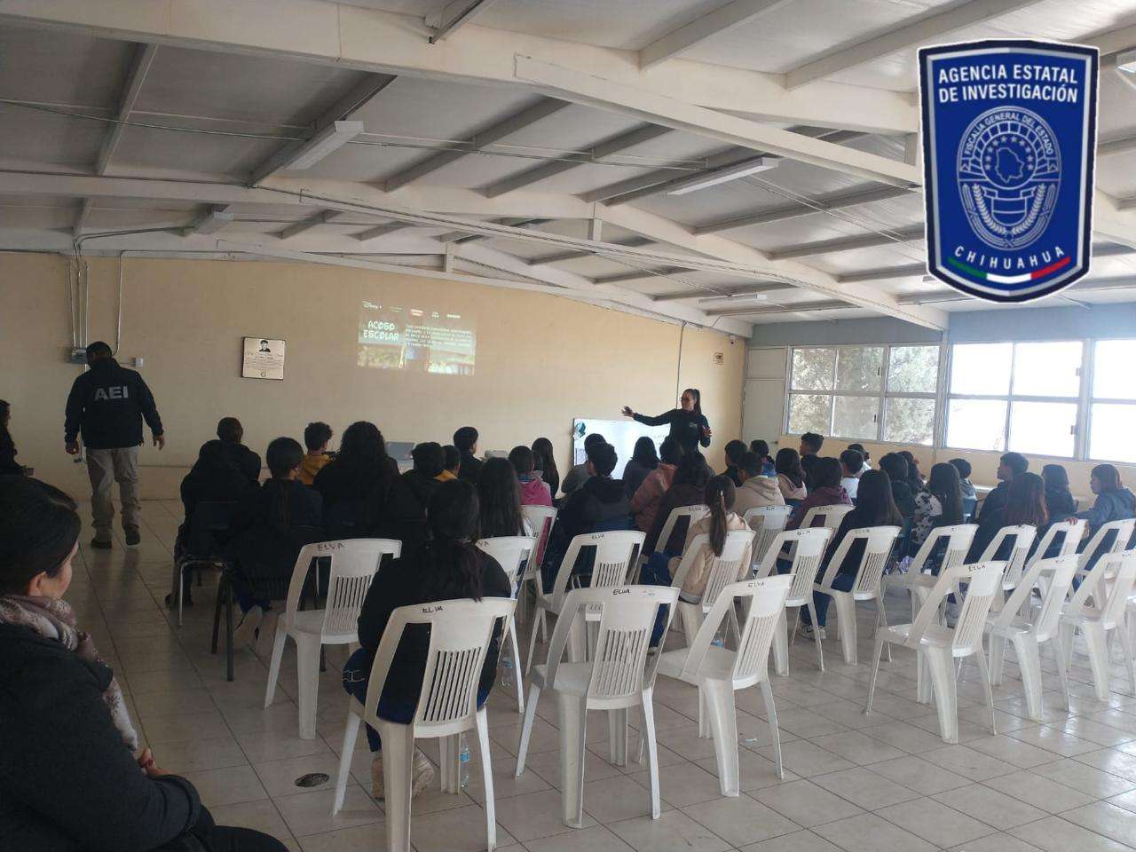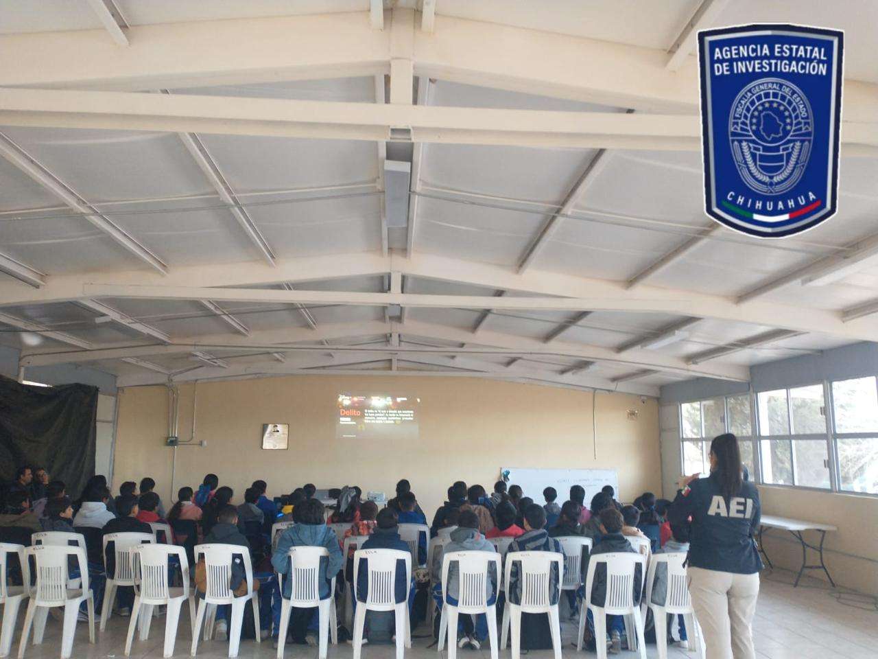 Chihuahua, Chih.- Estudiantes de los grados 1°A y 1°B, de la Escuela Secundaria Número 3053, ubicada en la localidad de Congregación Ortiz, del municipio de Rosales, recibieron la plática: Intervención Formativa en Materia de Violencia Sexual, Violencia Digital, Acoso Escolar y Maltrato, a cargo de instructores del Grupo de Orientación Escolar de Chihuahua (GOECHI).