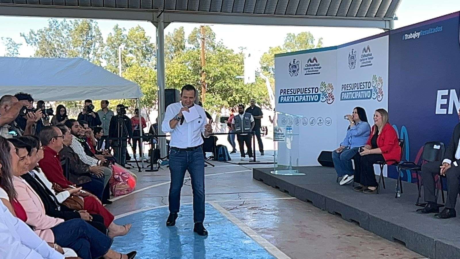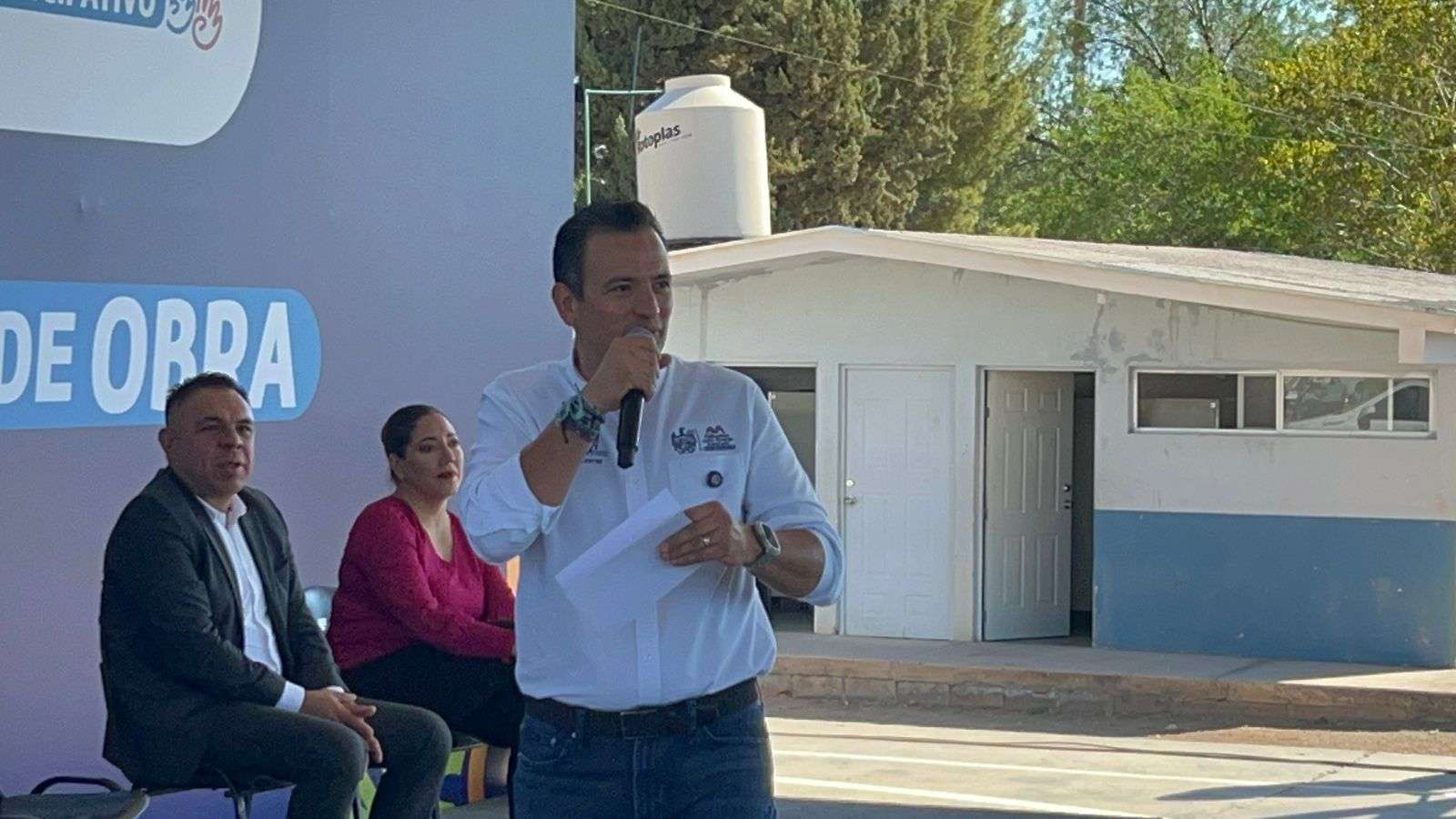 Chihuahua.- El alcalde Marco Bonilla encabezó la inauguración de la rehabilitación de diversas áreas de la secundaria 3046, obra seleccionada a través del Presupuesto Participativo, con el objetivo de mejorar la infraestructura y, con ello, la calidad educativa.