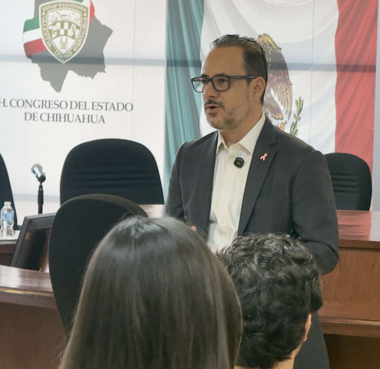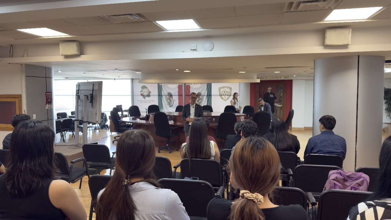 Chihuahua.- En un encuentro con alumnos de la Facultad de Derecho de la Universidad Autónoma de Chihuahua, el diputado por el Partido Acción Nacional (PAN), Jorge Soto, destacó la importancia de la preparación y la participación informada de los jóvenes en los asuntos públicos, durante su visita al Congreso del Estado.