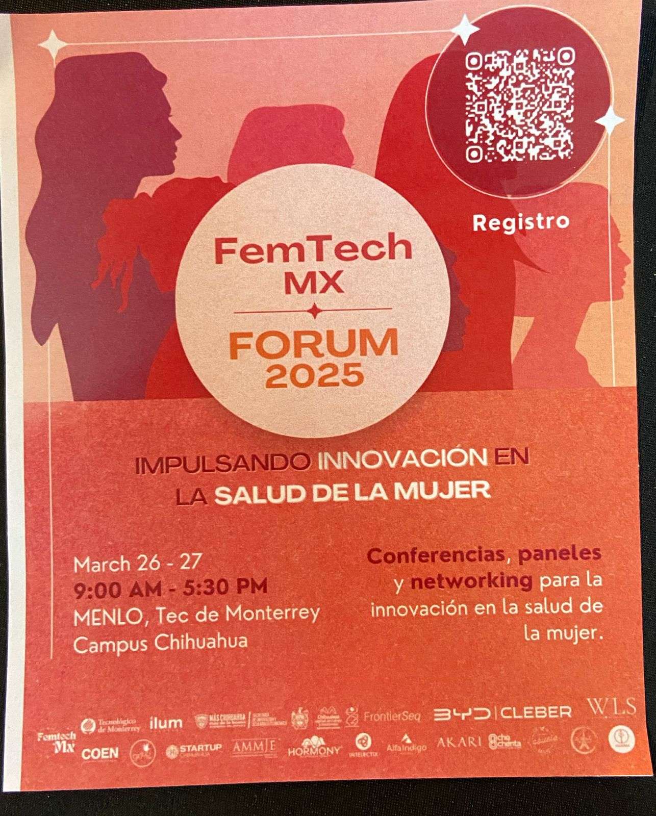 Chihuahua.- Se dio a conocer que el FemTech MX Forum 2025 se llevará a cabo los días 26 y 27 de marzo en el Tecnológico de Monterrey Menlo, con el objetivo de impulsar la salud de la mujer mediante la innovación y las nuevas tecnologías.