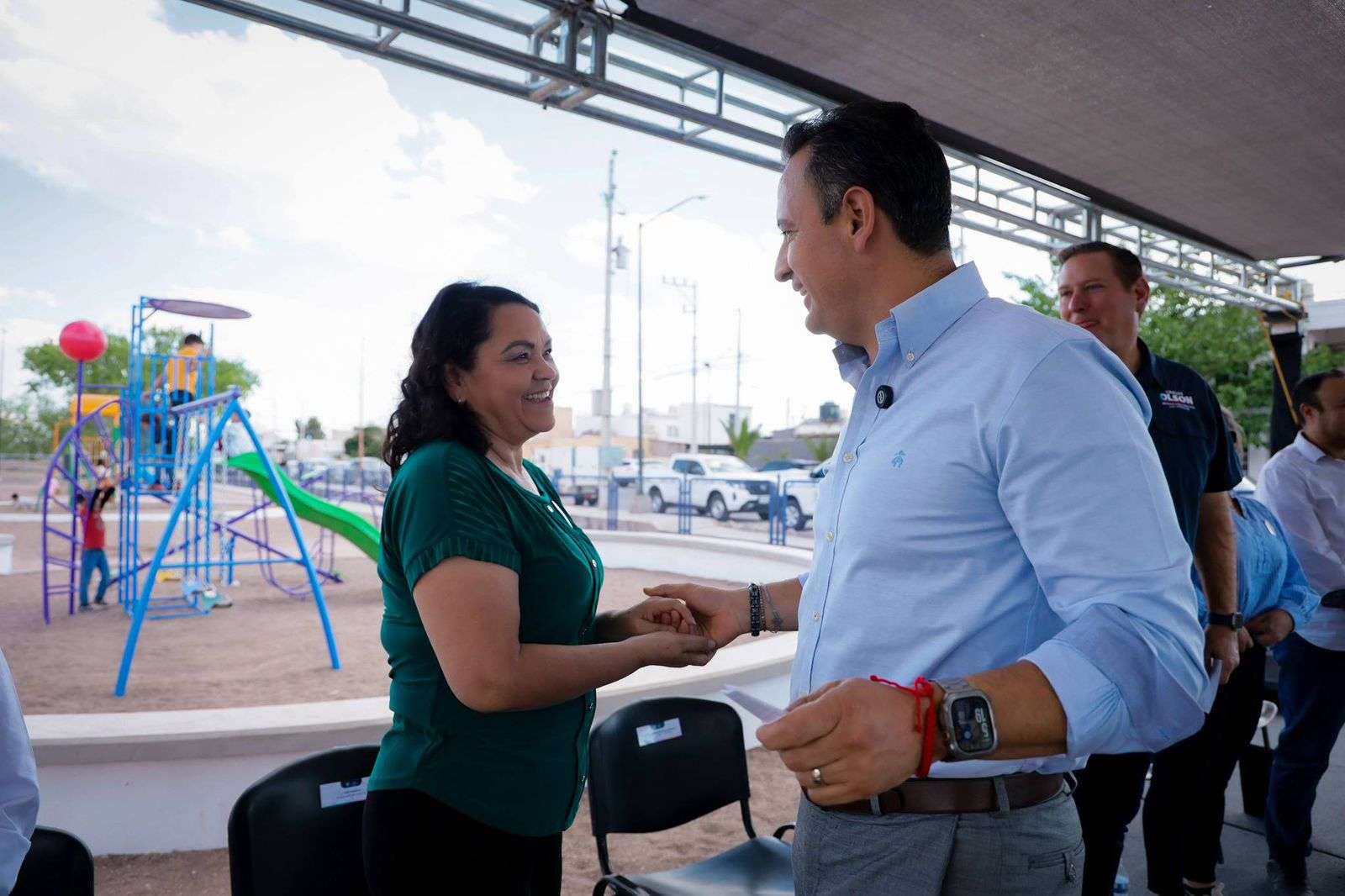 Chihuahua.- El alcalde Marco Bonilla, inauguró el Parque la Ribereña ubicado en la colonia Jardines de Sacramento, el cual fue construido gracias al Presupuesto Participativo y viene a brindar un espacio de encuentro, comodidad y de recreación en la zona para beneficio de cientos de familias.
