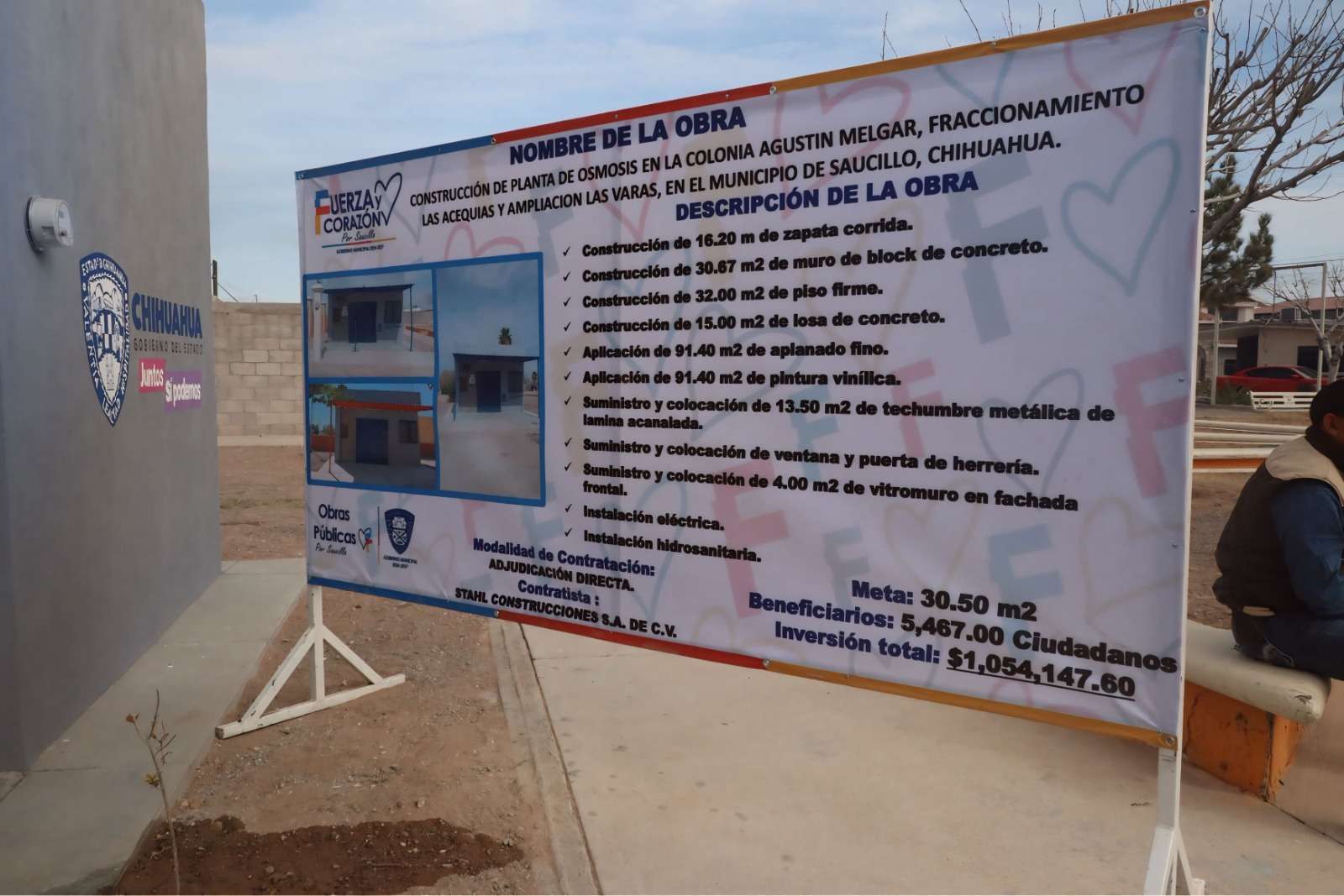Chihuahua, Chih.- El Gobierno del Estado, a través de la Junta Central de Agua y Saneamiento (JCAS) inauguró diversas obras en el municipio de Saucillo, para contribuir de manera directa al bienestar y a la salud de la población.