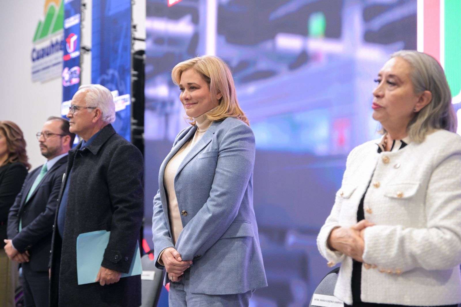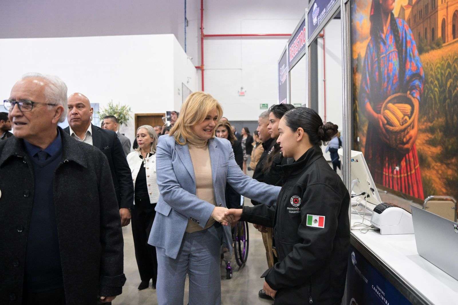 Posteriormente, acompañada de María de Lourdes Medina, presidenta nacional de la Cámara Nacional de la Industria de la Transformación (Canacintra), así como del alcalde de Columbus, Nuevo México, Philip H. Skinner, la titular del Ejecutivo recorrió los stands que forman parte de la exposición.