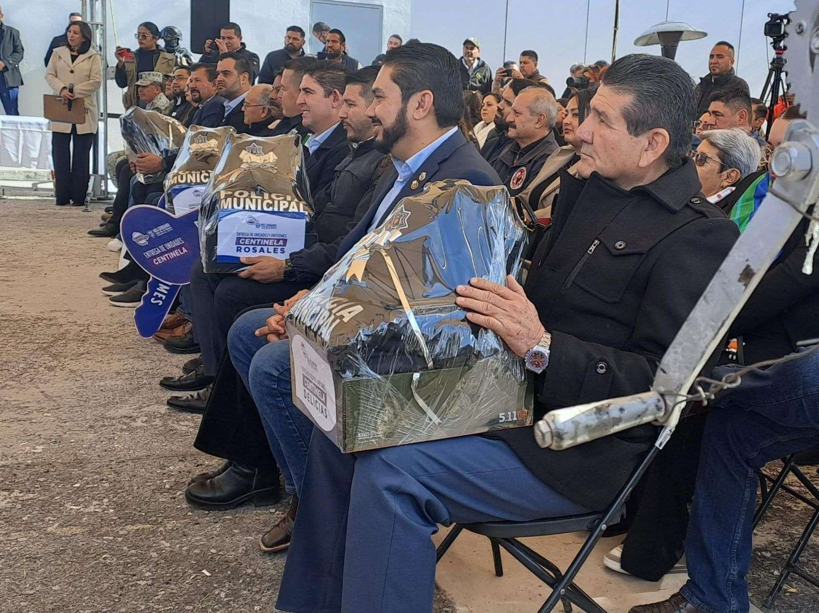 Además, se realizó la entrega de equipamiento como chamarras, uniformes y equipamiento policial, además de patrullas a los policías municipales de la zona sur-centro del estado.