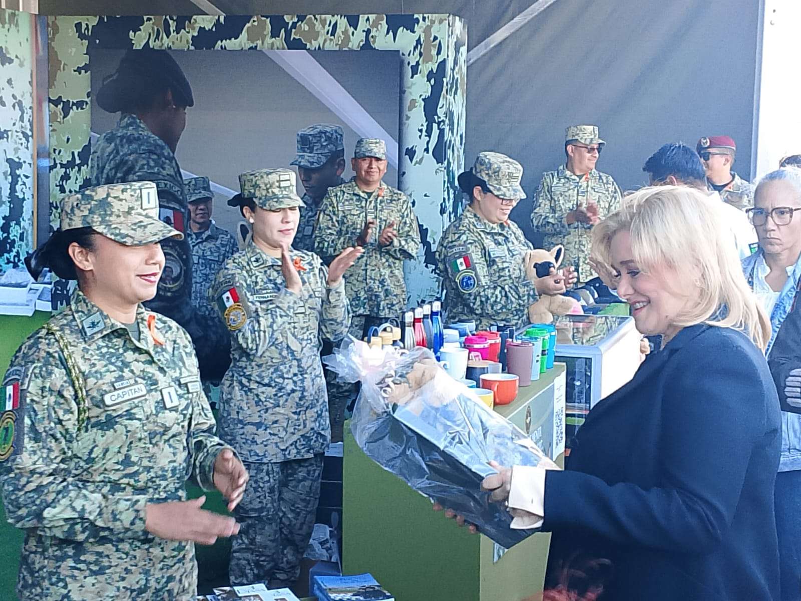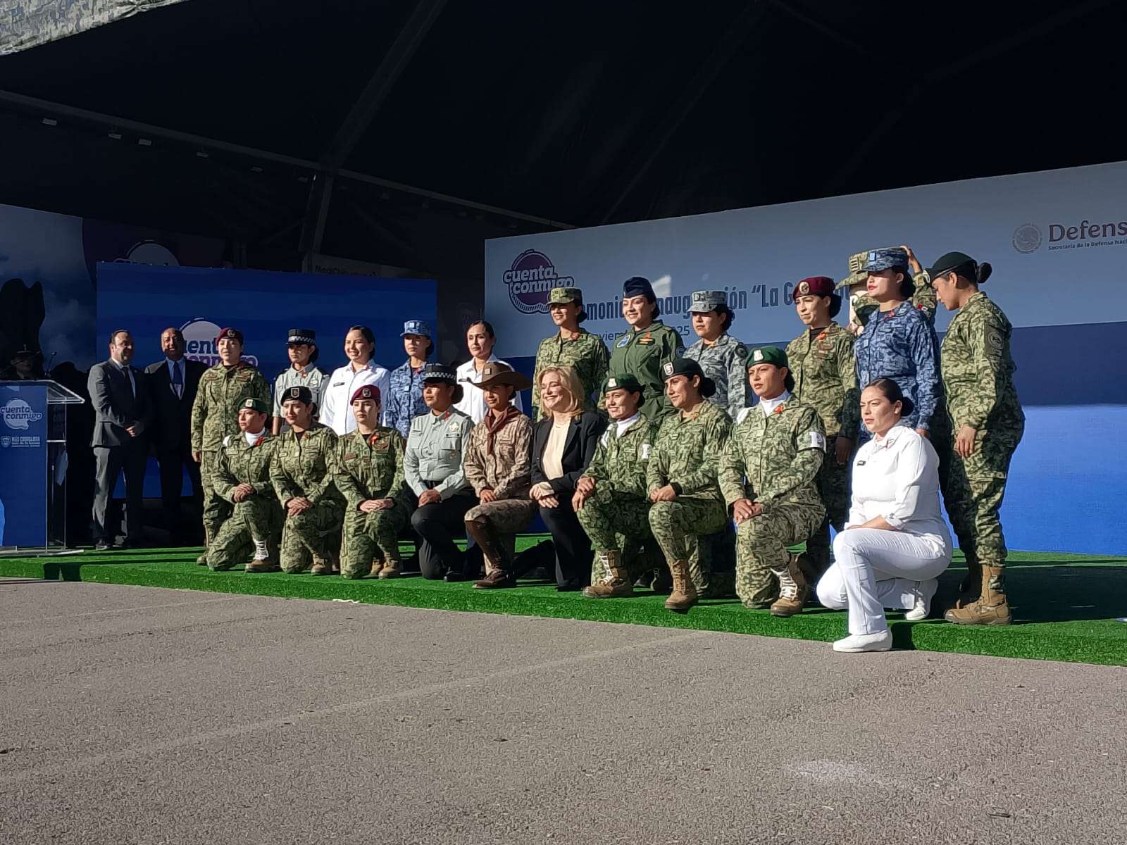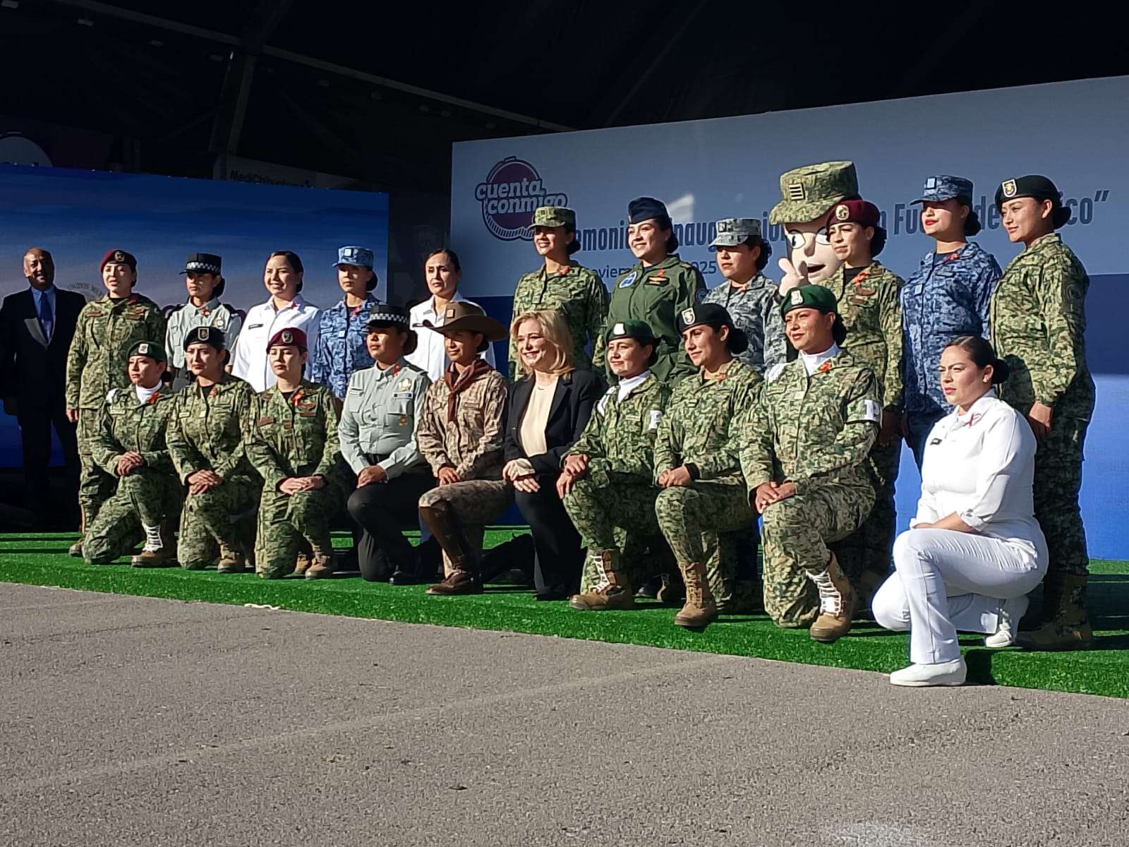 Posterior al mensaje, se realizó el corte de listón y la toma de la fotografía institucional, donde participaron exclusivamente mujeres del Ejército, Fuerza Aérea y Guardia Nacional pertenecientes a diversas especialidades: médicas, ingenieras, enfermeras, dentistas y pilotos aviadoras.