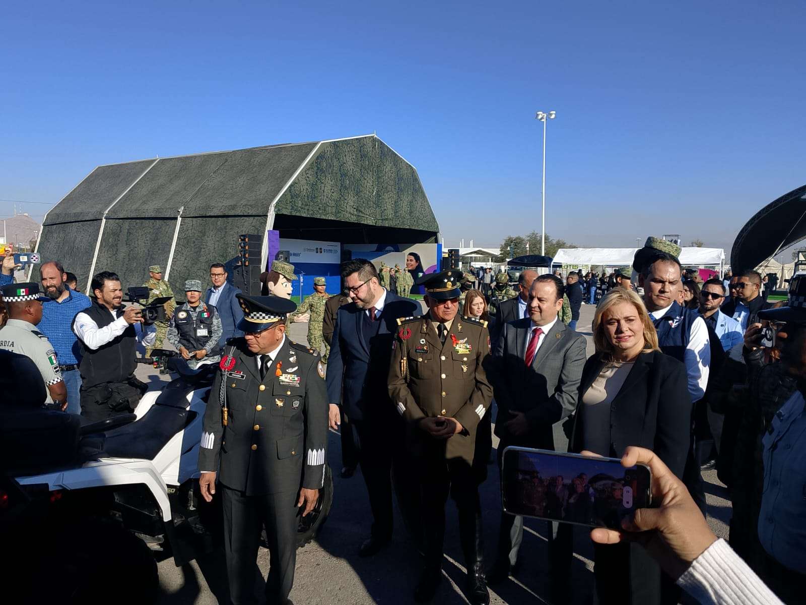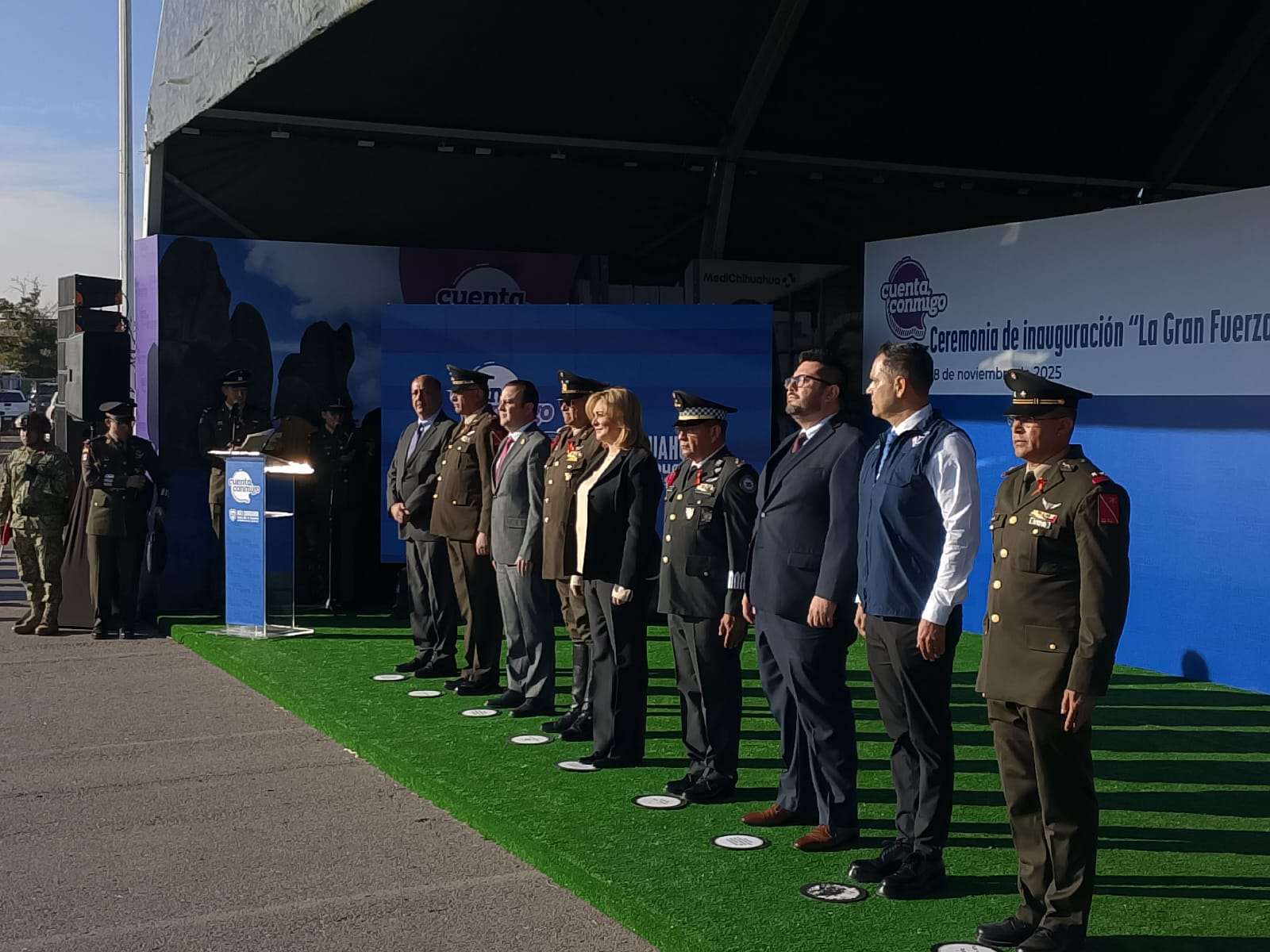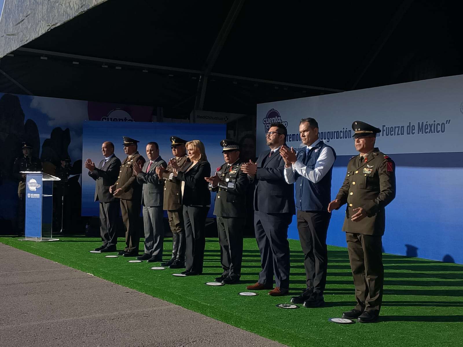 Chihuahua.- Con la presencia de la gobernadora María Eugenia Campos Galván y mandos de la Secretaría de la Defensa Nacional y la Guardia Nacional, este viernes fue inaugurada la exposición La Gran Fuerza Mexicana, un recorrido interactivo que busca acercar a la población a la labor del Ejército, la Fuerza Aérea y la Guardia Nacional.