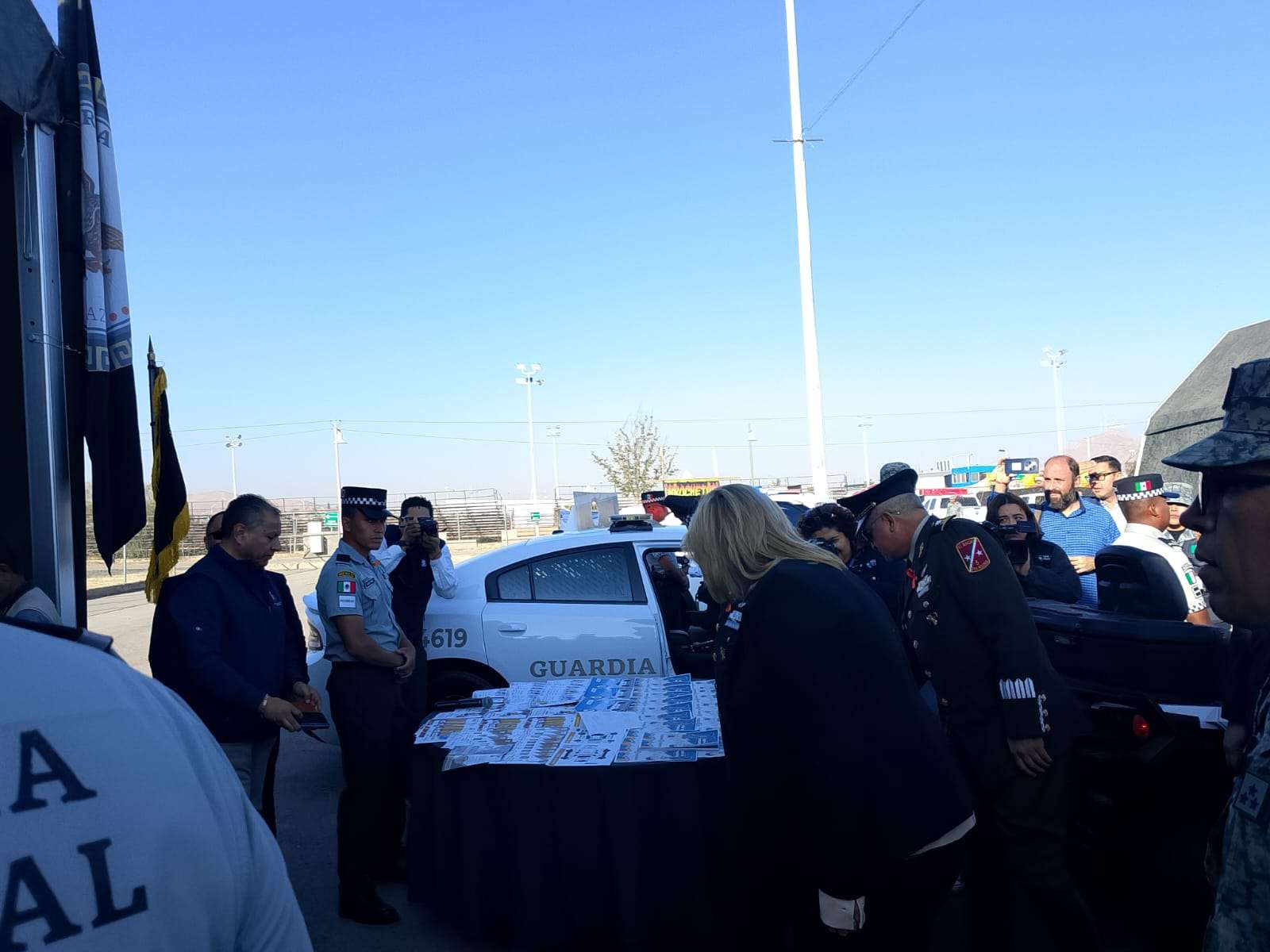 El presidium estuvo integrado por el comandante de la Quinta Zona Militar, el coronel William Conradi Chavarría González jefe del 32 Batallón de la Guardia Nacional, el diputado Guillermo Patricio Ramírez Gutiérrez, el magistrado Adalberto Bences Vaca en representación del Tribunal Superior de Justicia, el coronel de Infantería Fortunato Sánchez Cobos, el secretario estatal de Seguridad, Gilberto Loya, el teniente coronel José Ángel Rojas García y el secretario de Educación, Francisco Hugo Gutiérrez Dávila.