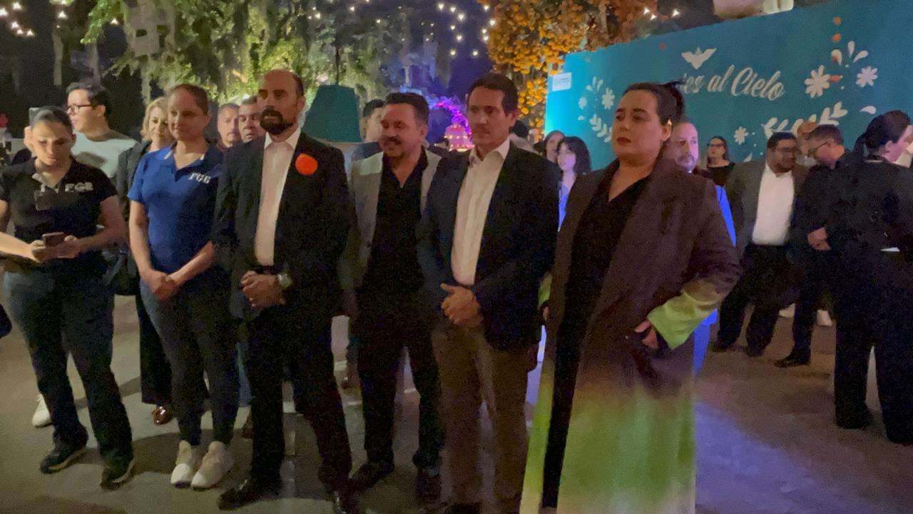 Chihuahua.- El secretario de Hacienda, Jesús Granillo Vázquez, acompañado de la secretaria de Cultura Alejandra Enríquez y el secretario de Salud Gilberto Baeza Mendoza, inauguraron los altares de muertos en la Plaza del Ángel.