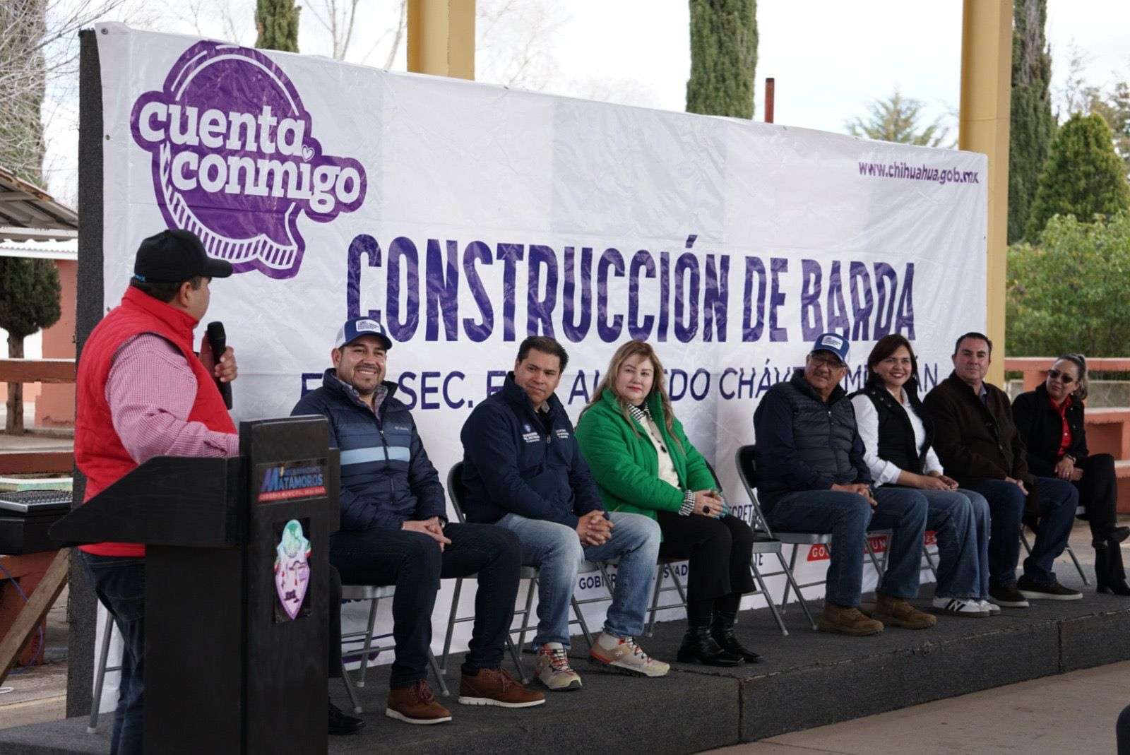 Villa Matamoros, Chih.- La Secretaría de Educación y Deporte (SEyD) y el Ayuntamiento de Matamoros, inauguraron la barda perimetral de la Secundaria Federal Alfredo Chávez Amparán, la cual beneficiará de manera directa a 188 estudiantes.