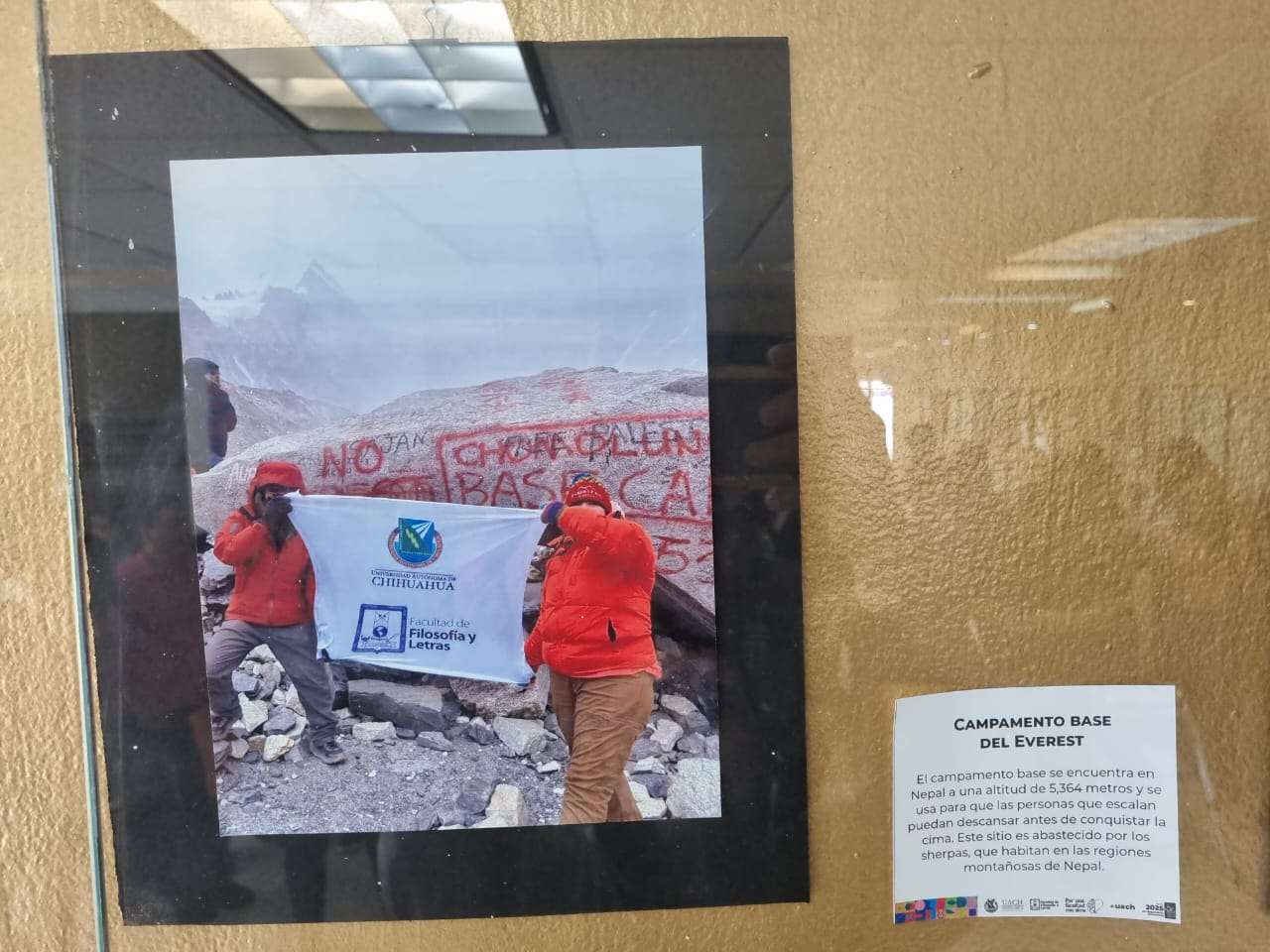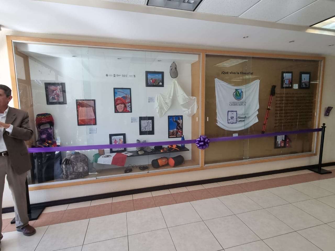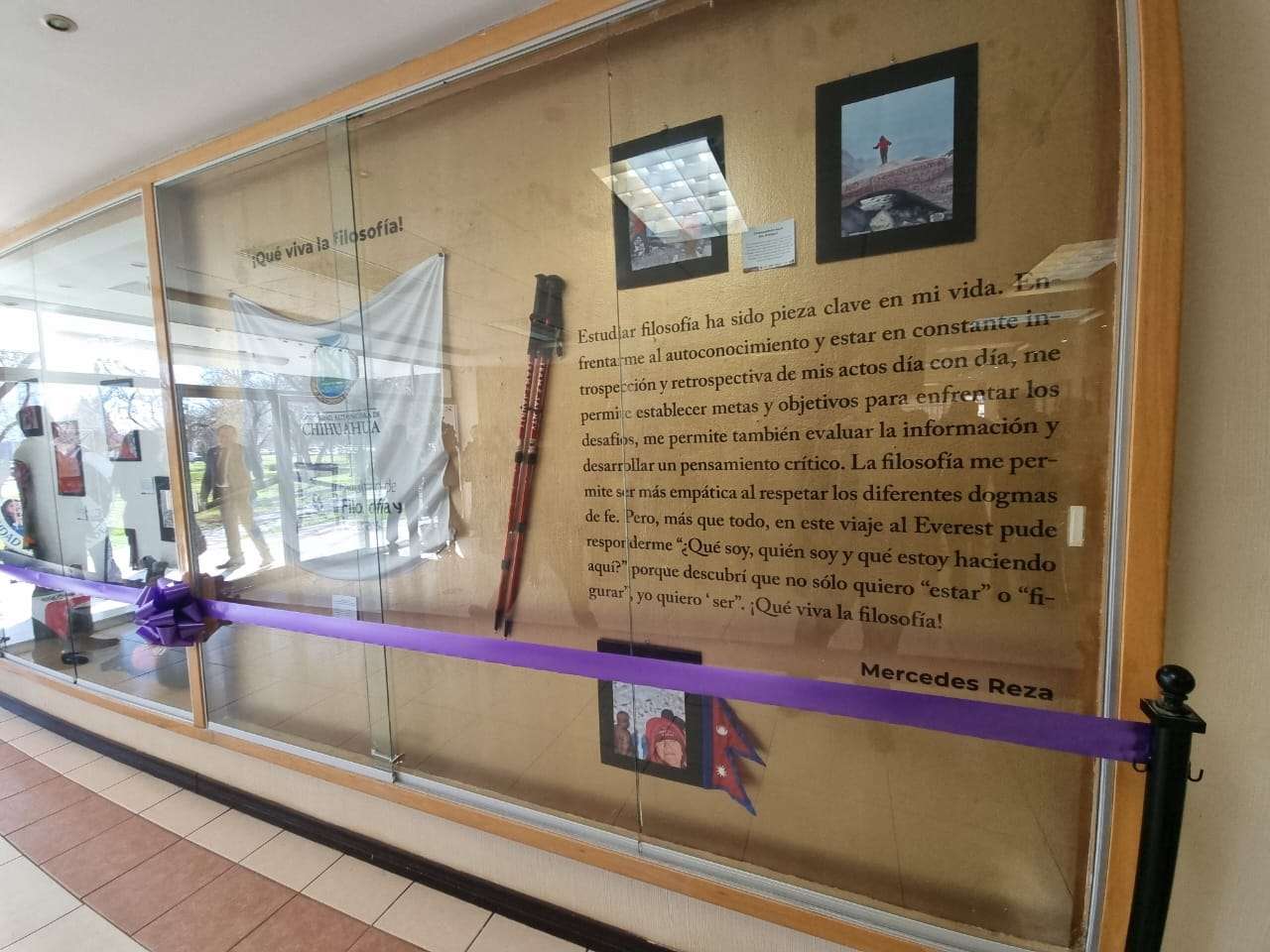 La muestra, que se lleva a cabo en el vestíbulo de la facultad, presenta una selección de objetos personales de Reza, quien recientemente alcanzó un hito impresionante al subir al Monte Everest.