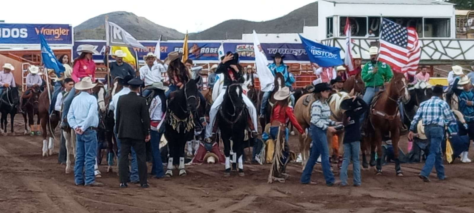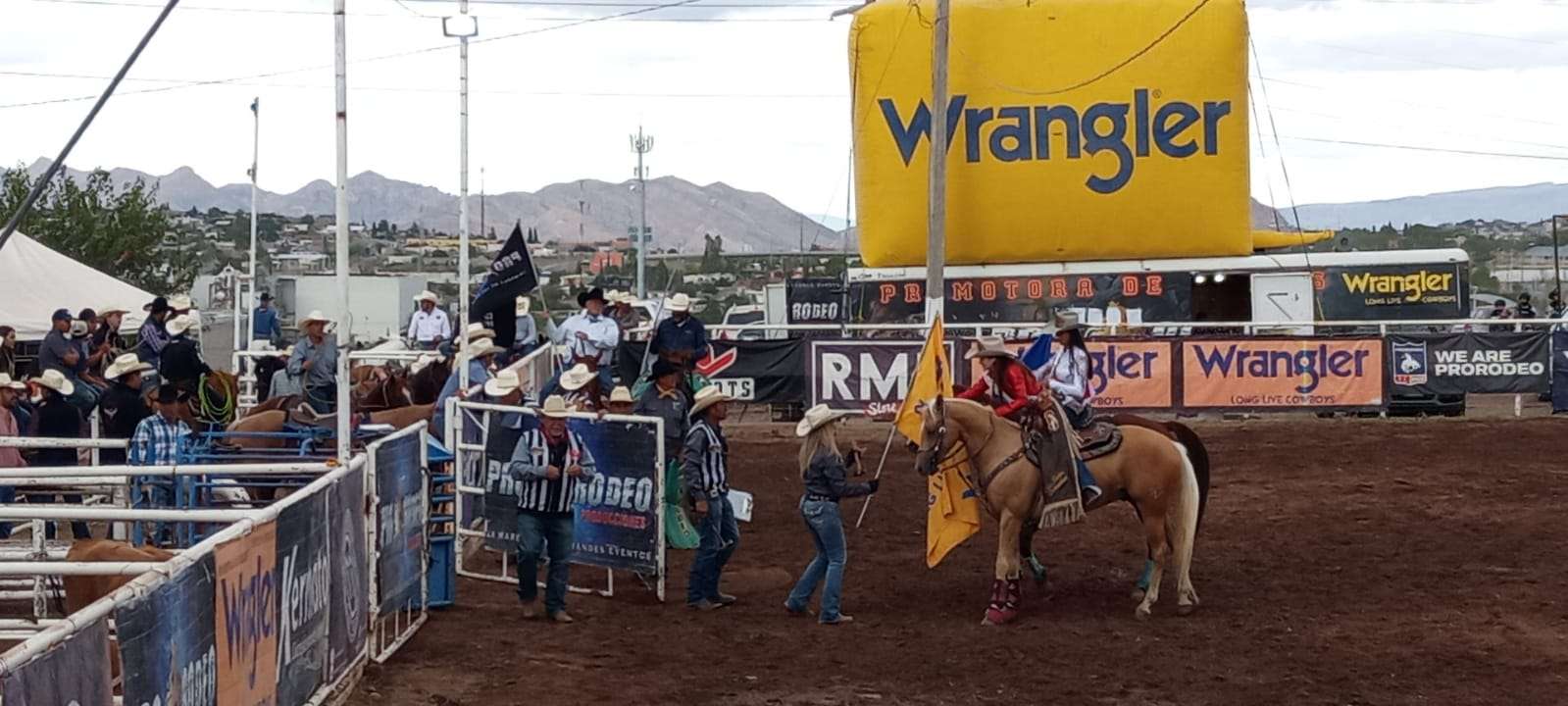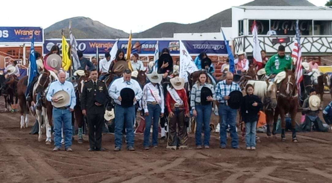 Chihuahua.- En la arena de Rodeo del Expogan 2023, entonando el Himno Nacional nombraron a Alejandra Mendoza como Miss Vaquera 2023, realizando después del acto protocolario su primer vuelta al rodeo.