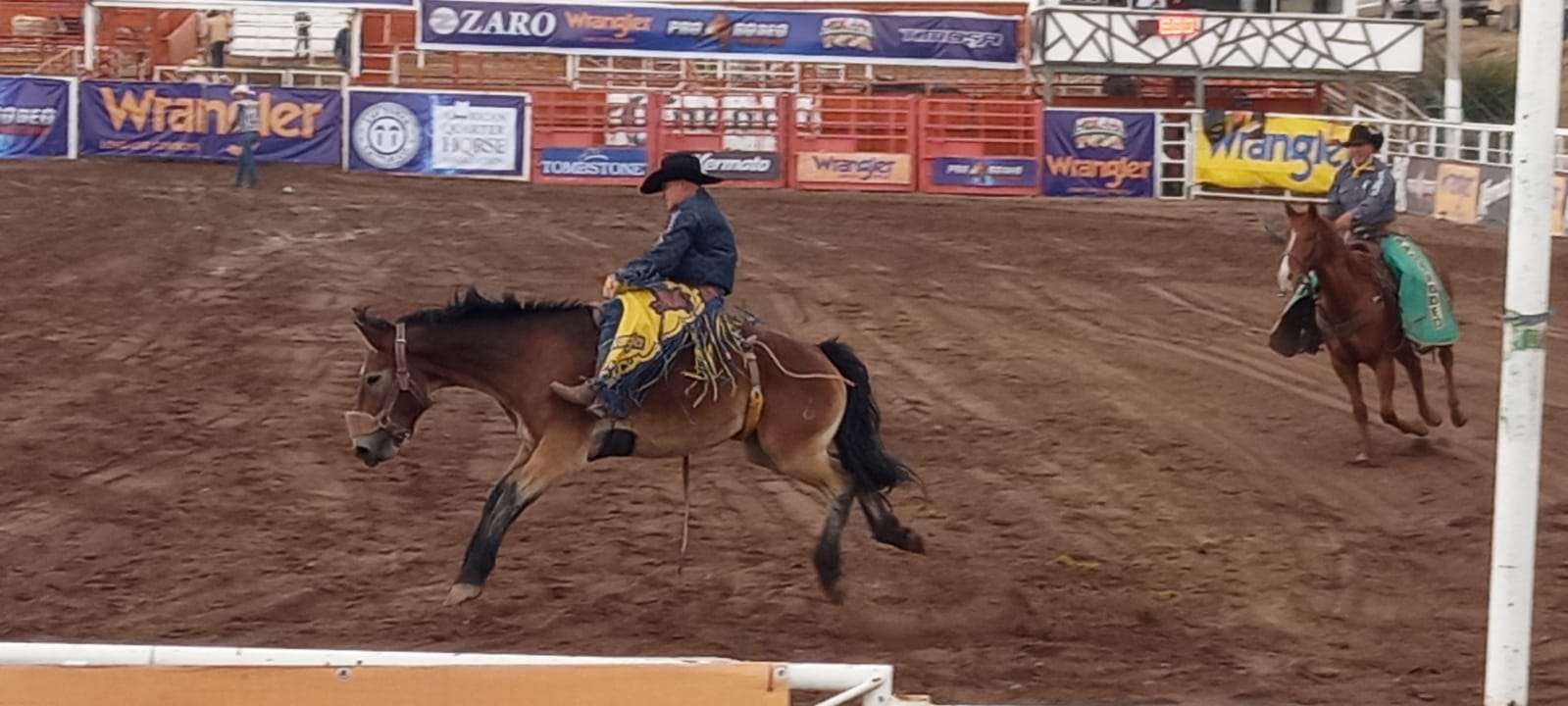 Inicia el torneo de rodeo en sus diferentes disciplinas de monta de caballo, lazo de parejas máster y monta de caballo con montura en esta disciplina tienen que durar 8 segundos montando al caballo.