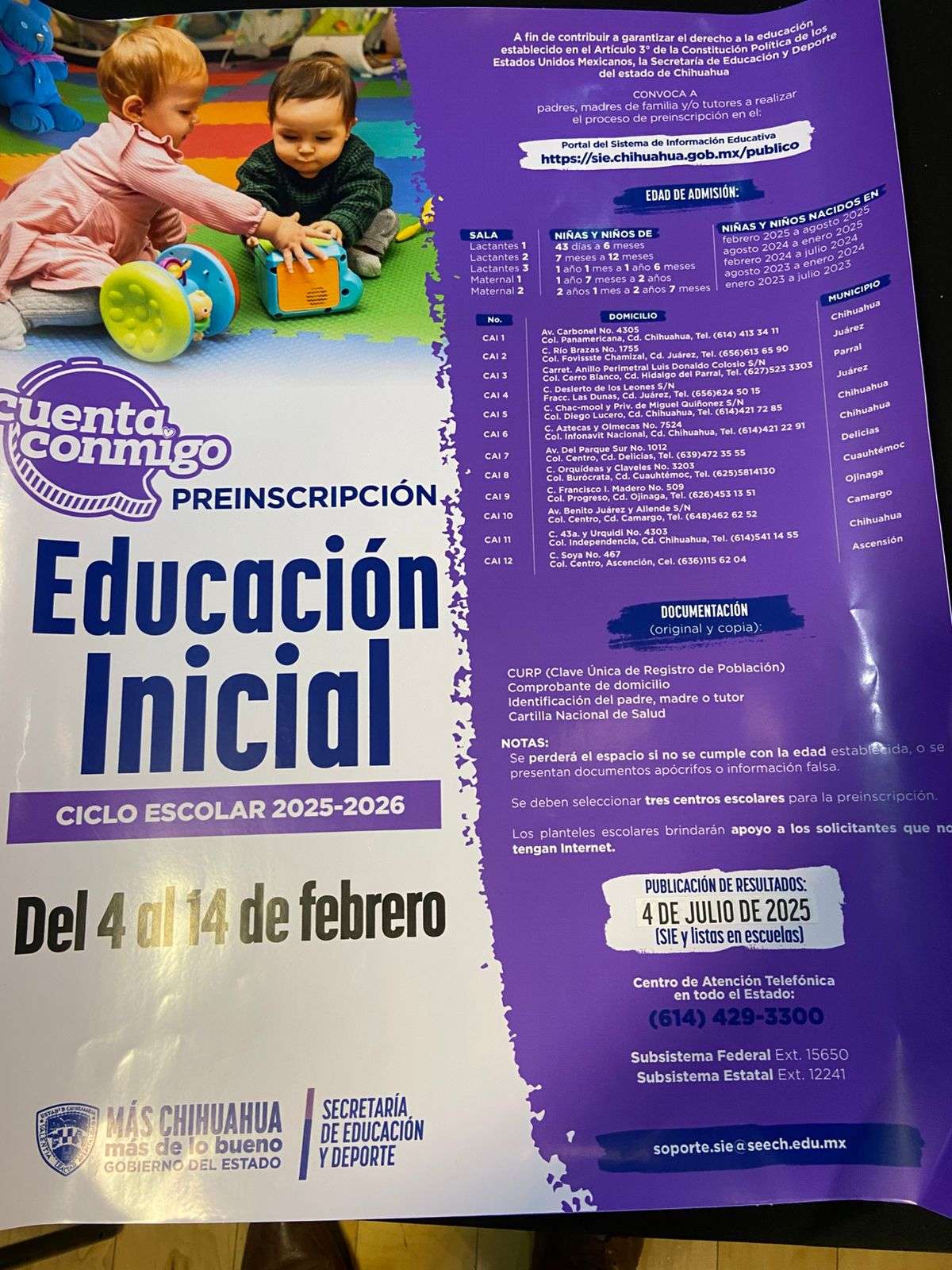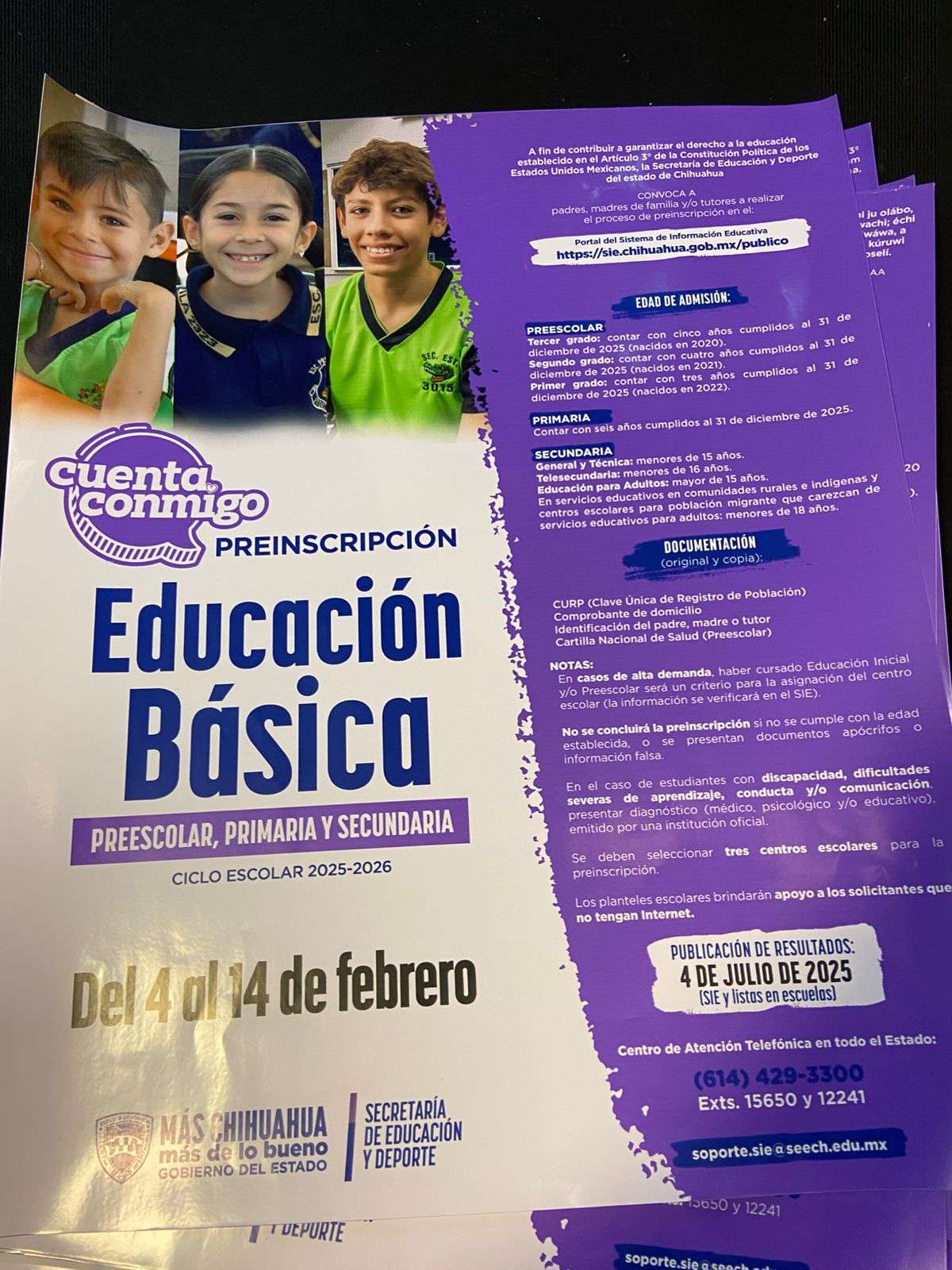 Chihuahua.- La Secretaría de Educación y Deporte dio a conocer las fechas para realizar las preinscripciones para la educación básica, del ciclo escolar 2025-2026, que darán inicio del 4 al 14 de febrero.