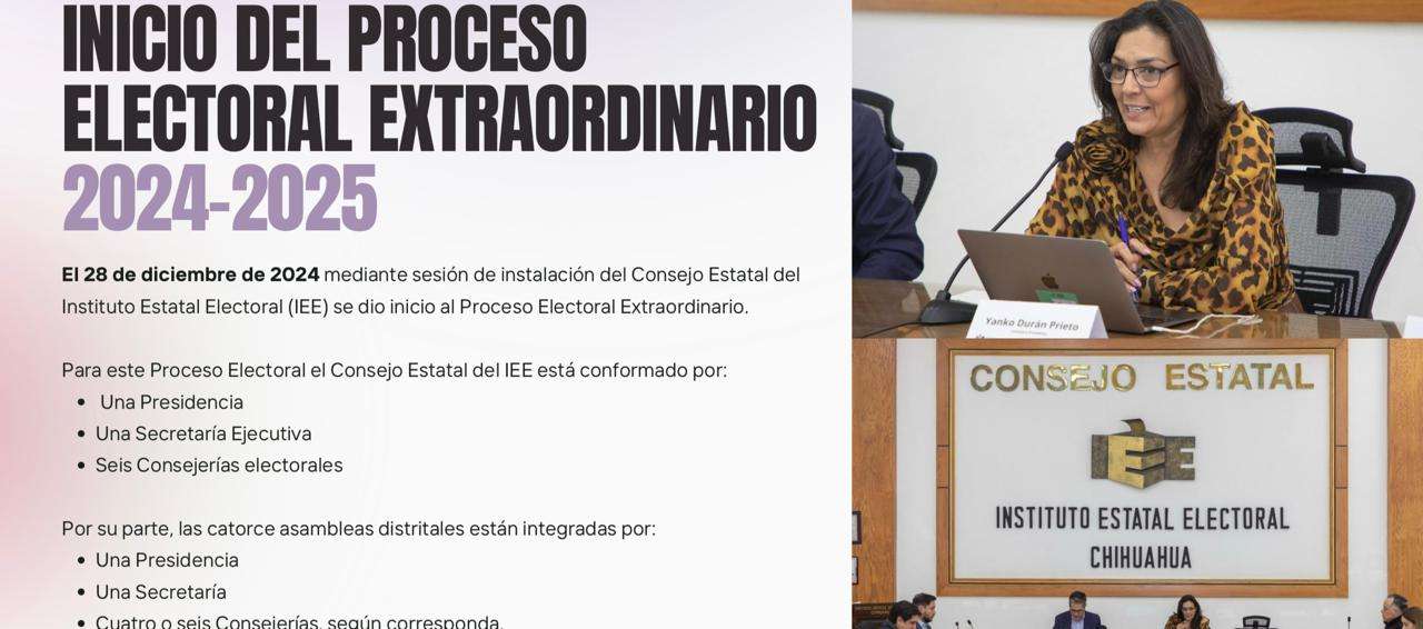 El 28 de diciembre de 2024, durante la sesión de instalación del Consejo Estatal del IEE, se dio inicio al proceso electoral extraordinario. En esa misma sesión, se acordó que el consejo estaría conformado por una Presidencia, Secretaría Ejecutiva, seis Consejerías Electorales y catorce Asambleas Distritales, las cuales están integradas por una Presidencia, una Secretaría, y entre cuatro y seis Consejerías, dependiendo del caso.