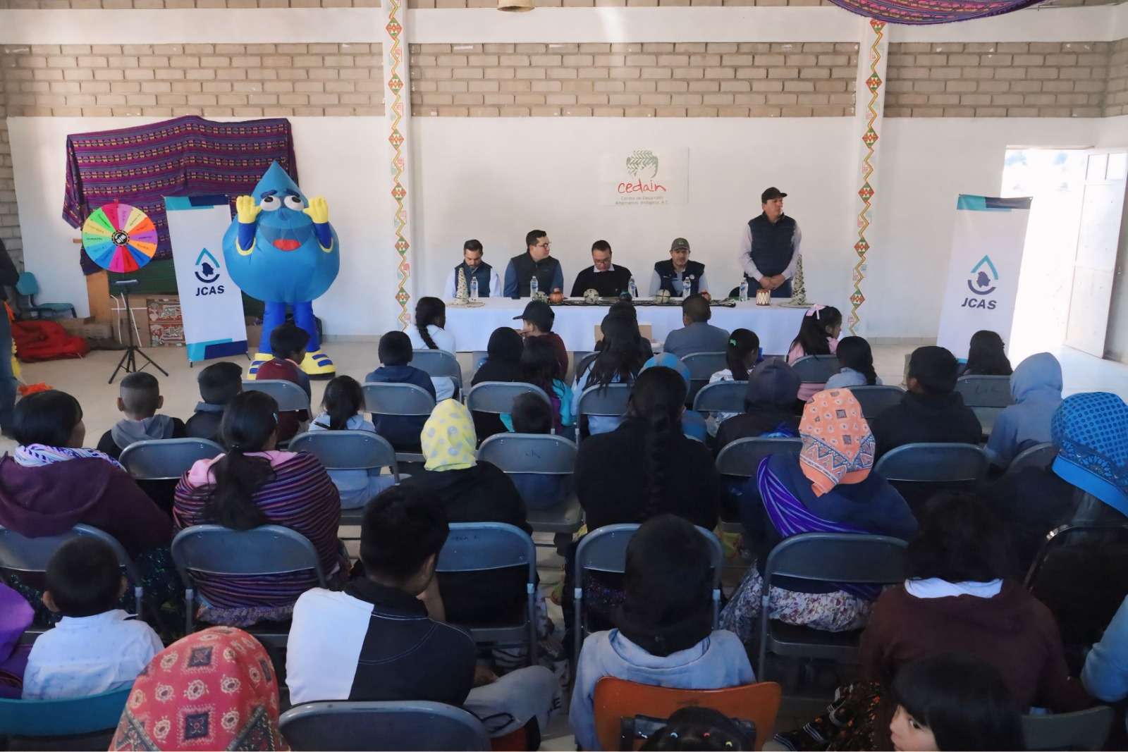 Durante su mensaje, el titular de la JCAS enfatizó que, gracias al trabajo de Cedain y al apoyo del Gobierno del Estado, este año se está llevando a cabo la instalación de nuevas Cosechas de Agua en diversas comunidades de la Sierra Tarahumara.