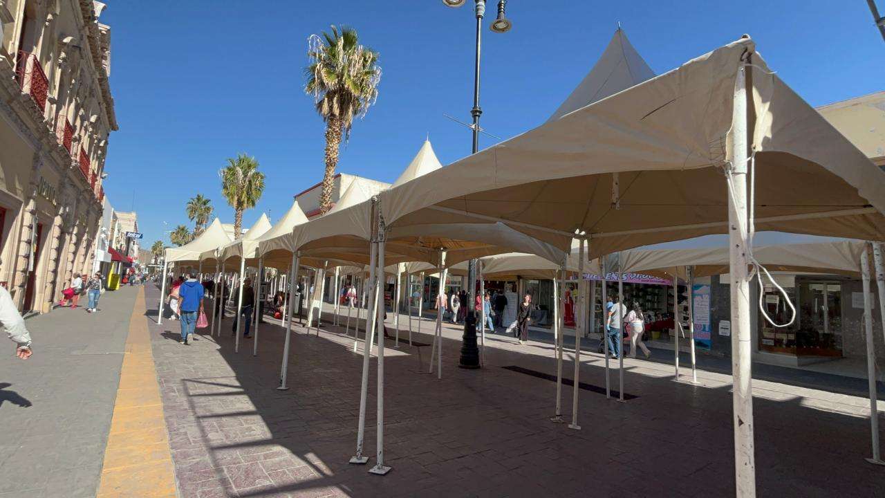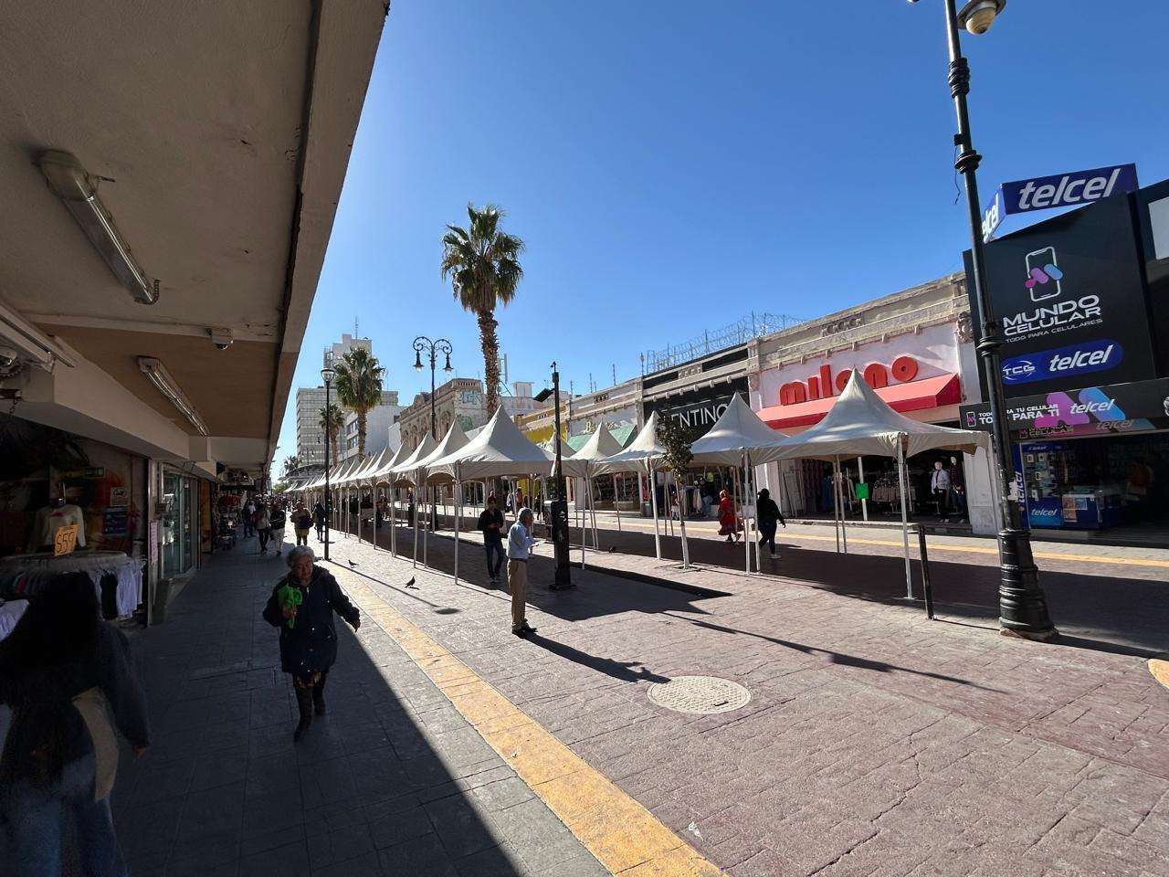 Chihuahua.- La temporada de ventas decembrinas está a punto de comenzar en el primer cuadro de la ciudad con la instalación masiva de decenas de carpas a lo largo de la calle Libertad.