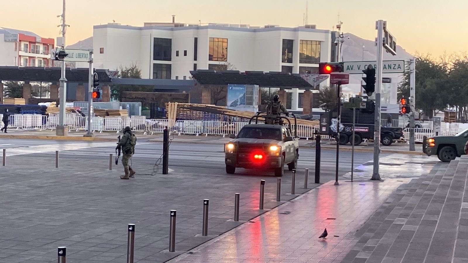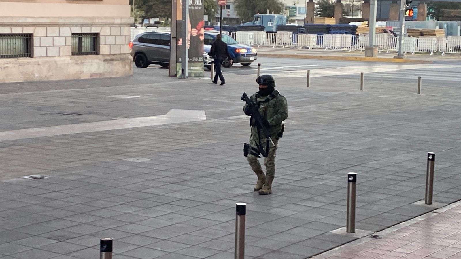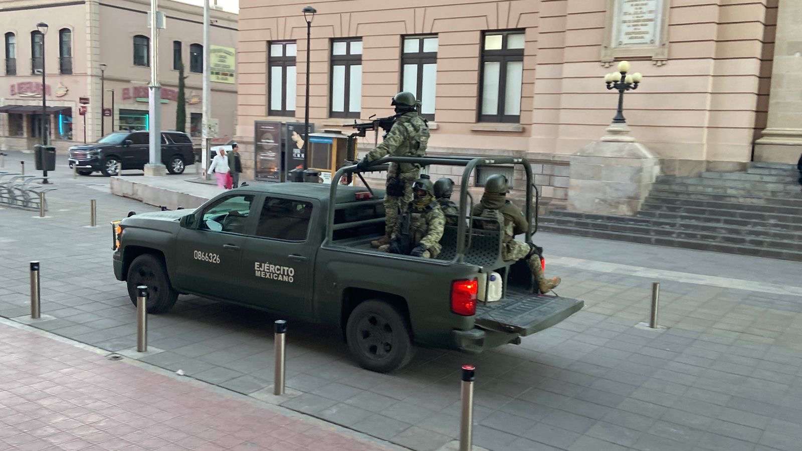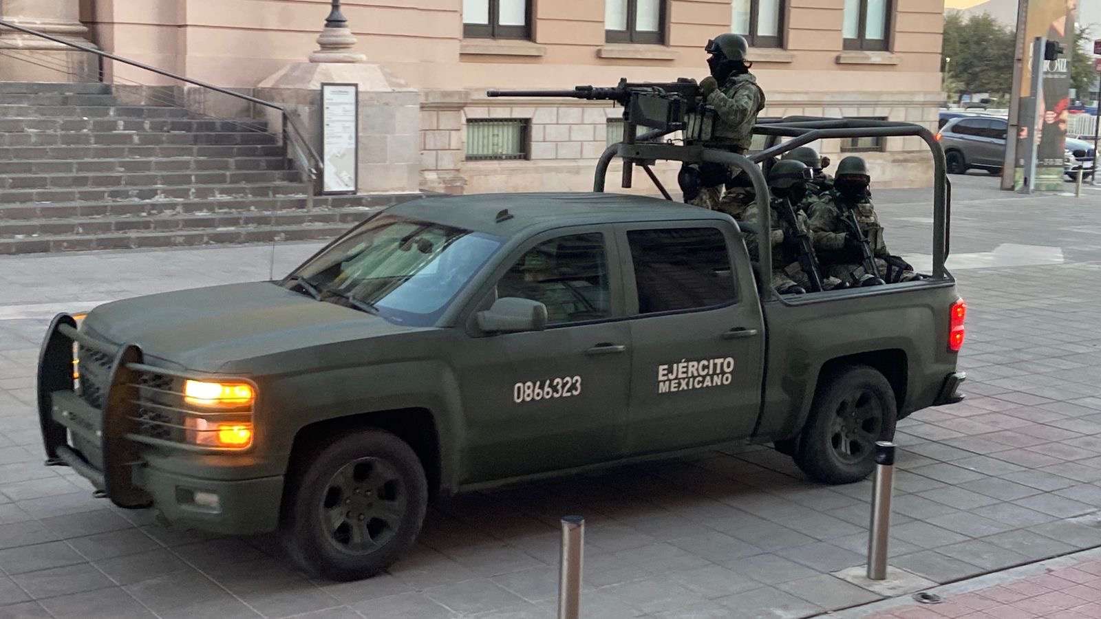 Al Palacio de Gobierno arribaron elementos de la Secretaría de la Defensa Nacional, de la Guardia Nacional, de la Secretaría de Seguridad Pública Estatal y de la Fiscalía General del Estado.