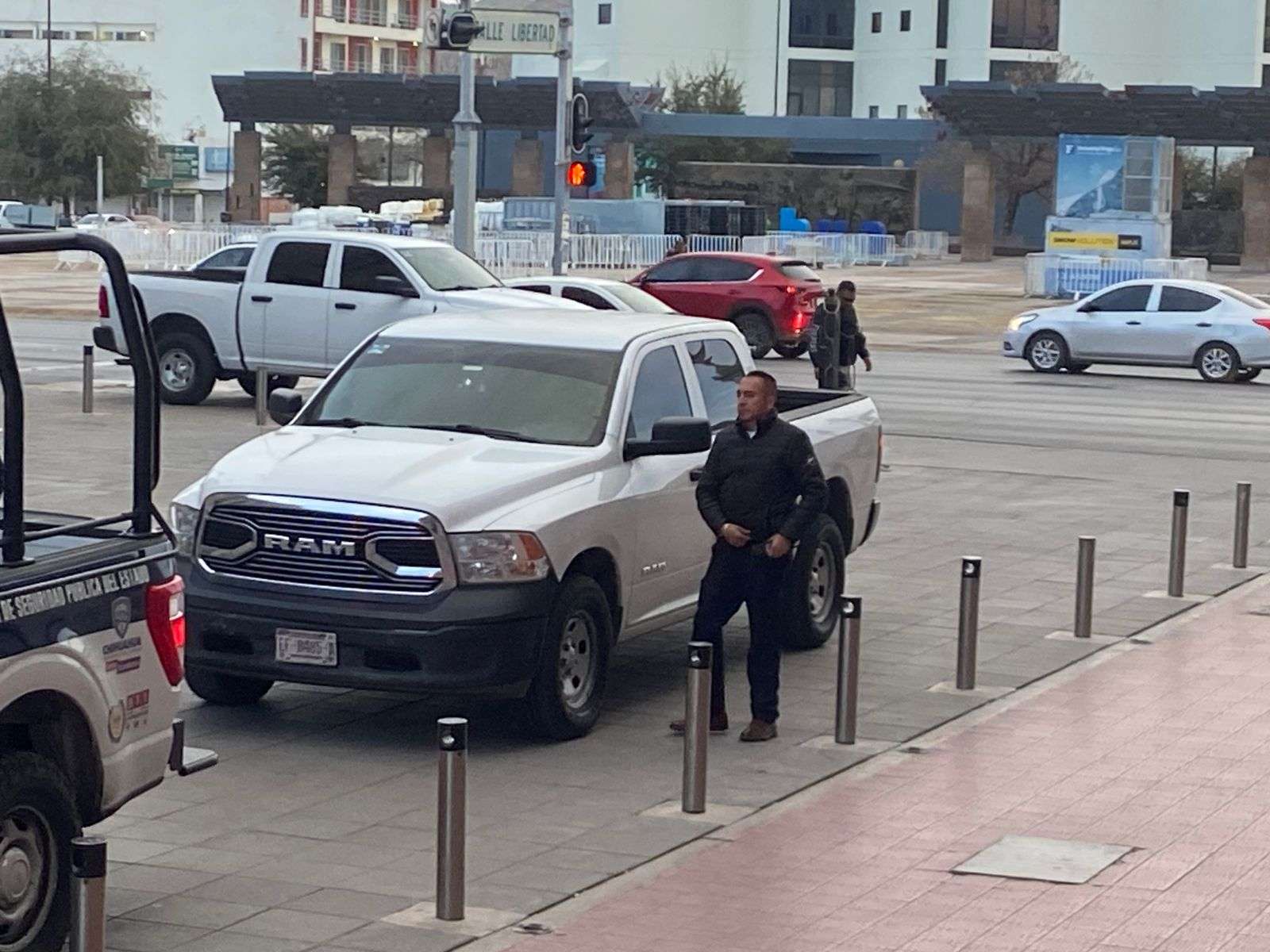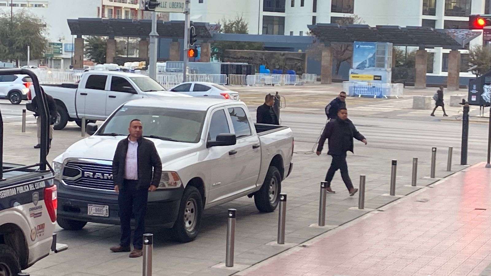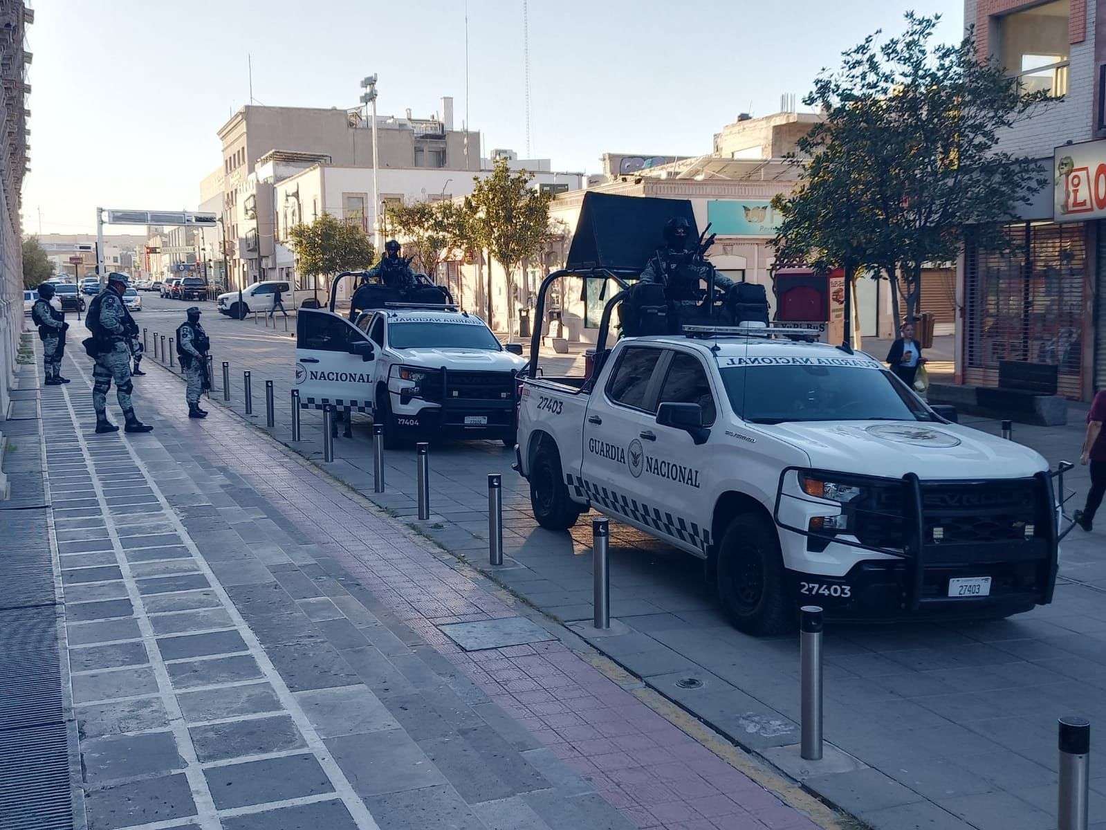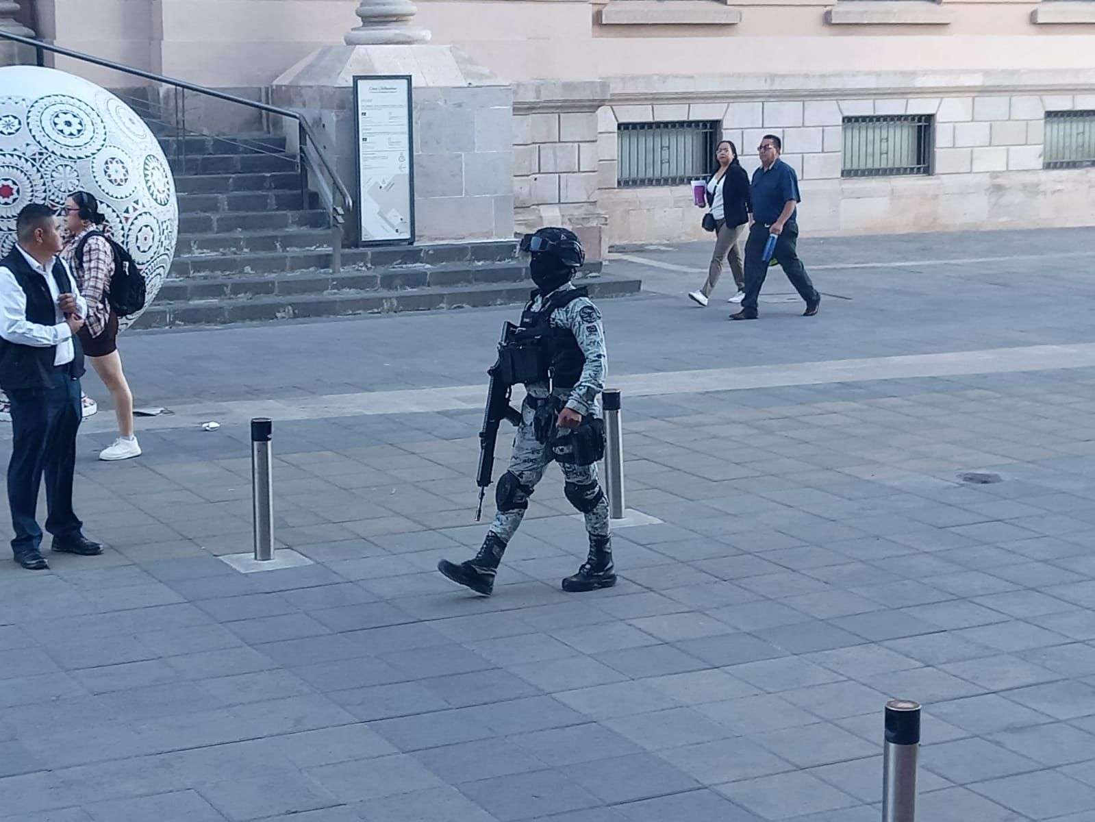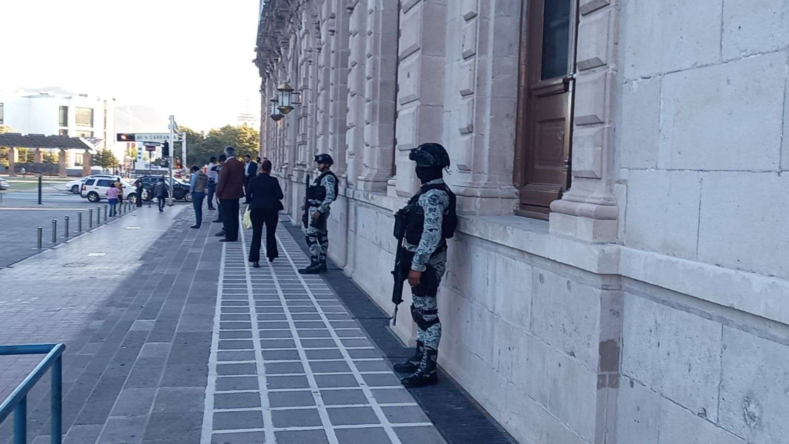Al Palacio de Gobierno arribaron elementos de la Secretaría de la Defensa Nacional, de la Guardia Nacional, de la Secretaría de Seguridad Pública Estatal y de la Fiscalía General del Estado.