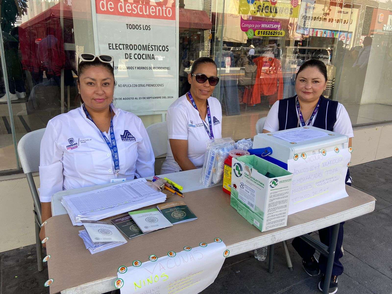 Chihuahua. - En la calle Libertad se instaló, un módulo de vacunación por parte de la Secretaría de Salud para completar los esquemas de vacunación en niños menores de 10 años.