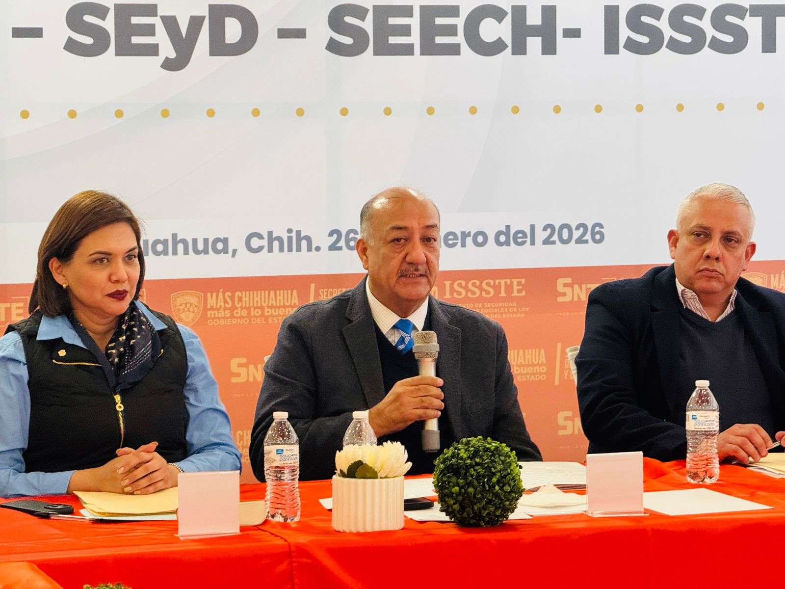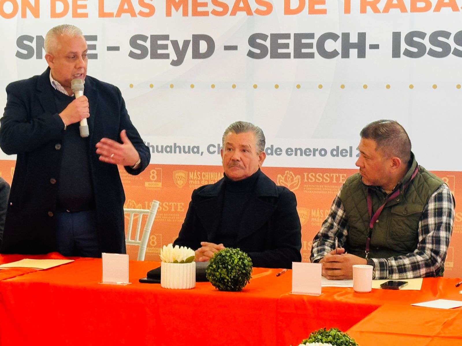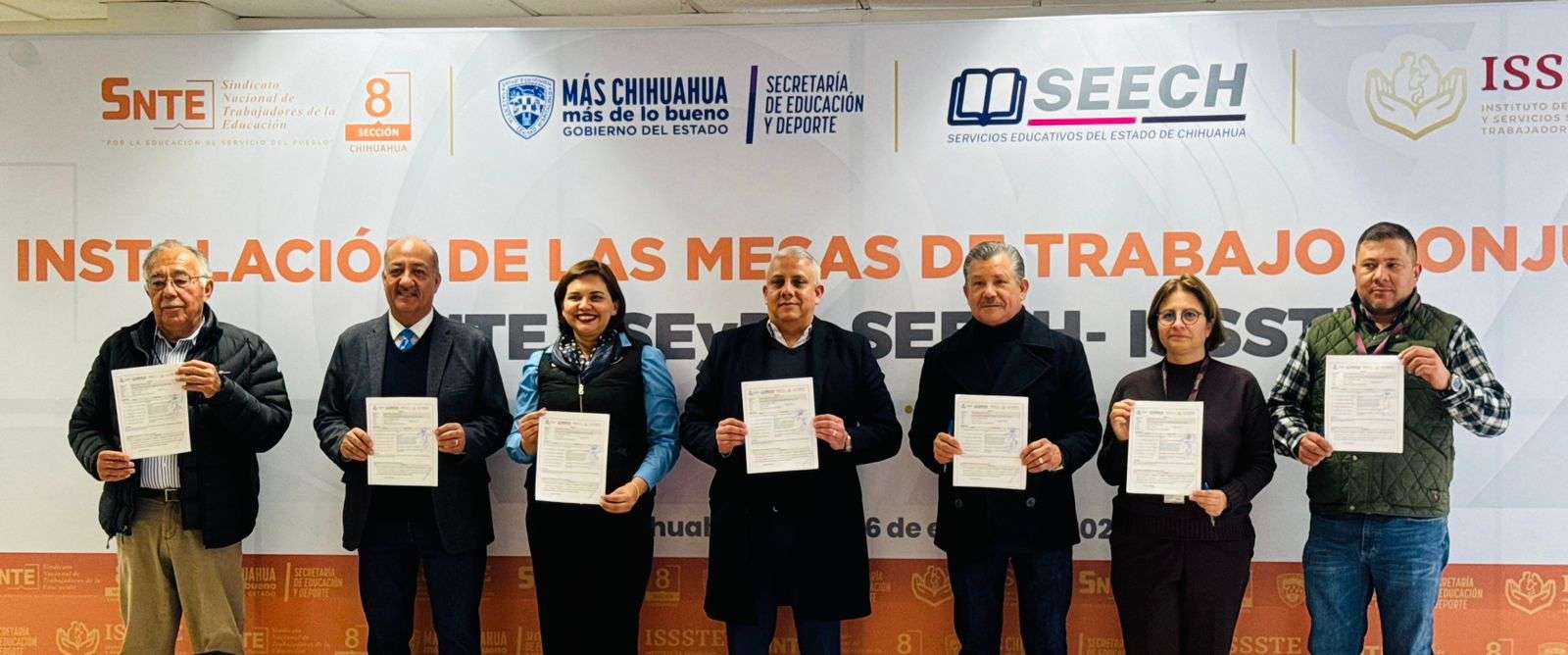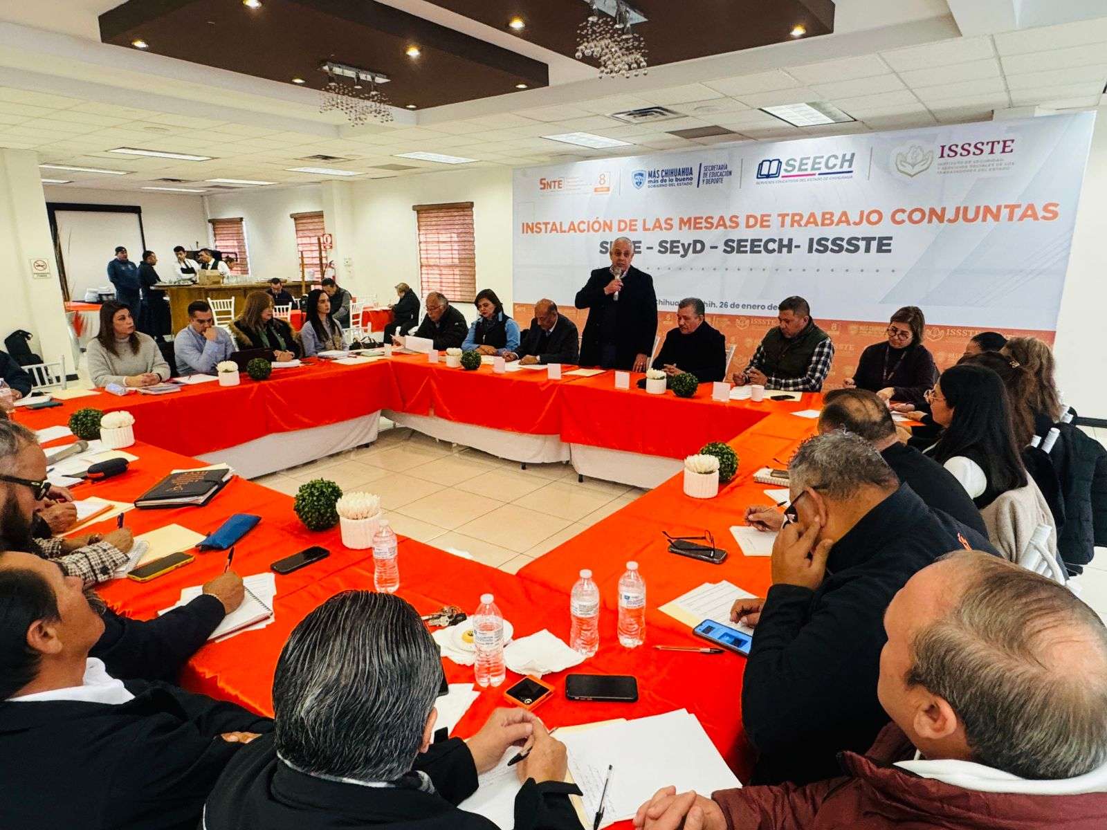 Chihuahua.- Con el objetivo de armonizar acciones y fortalecer la atención a las y los trabajadores de la educación y sus familias, autoridades sindicales, educativas y de salud llevaron a cabo la instalación de mesas de trabajo conjuntas.
