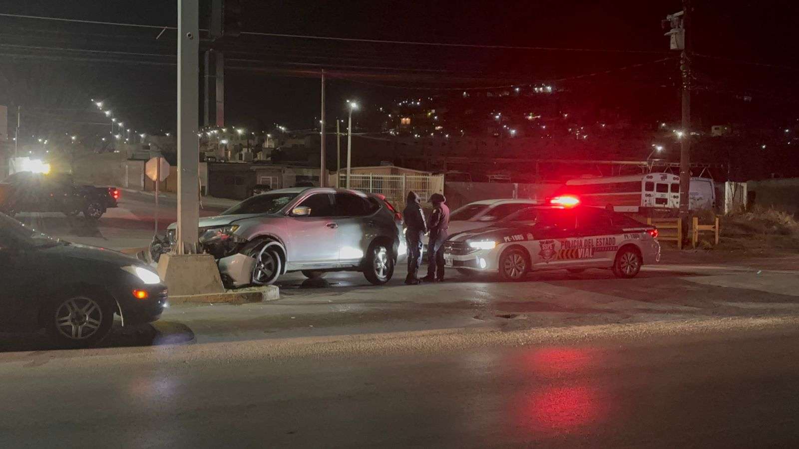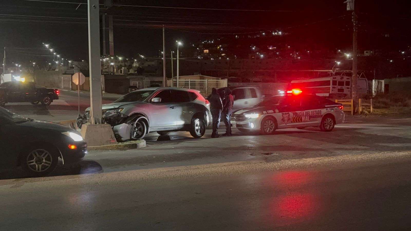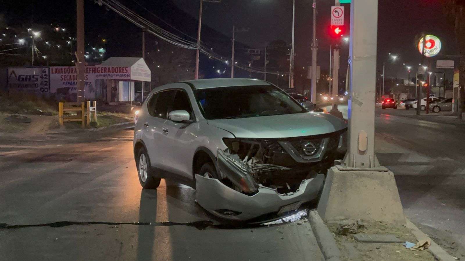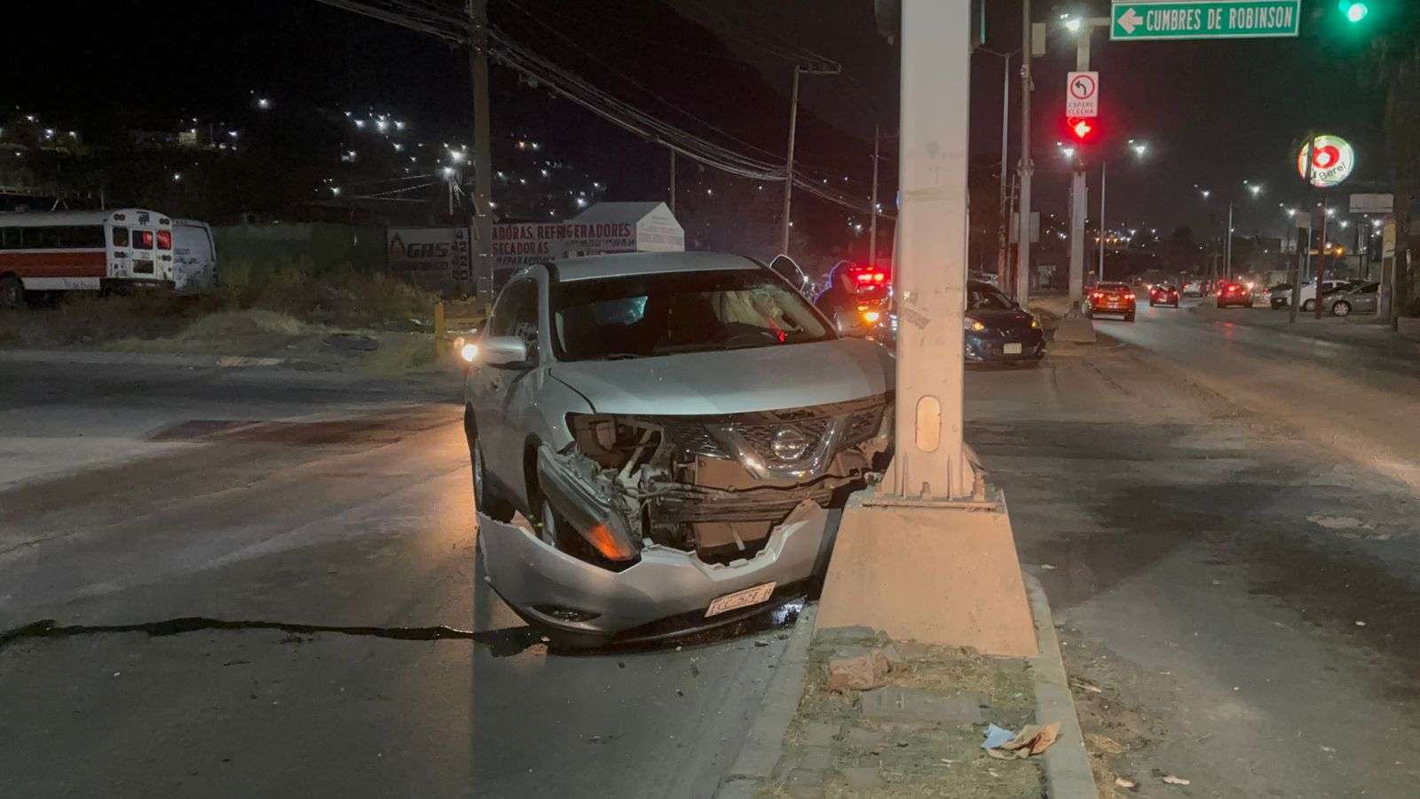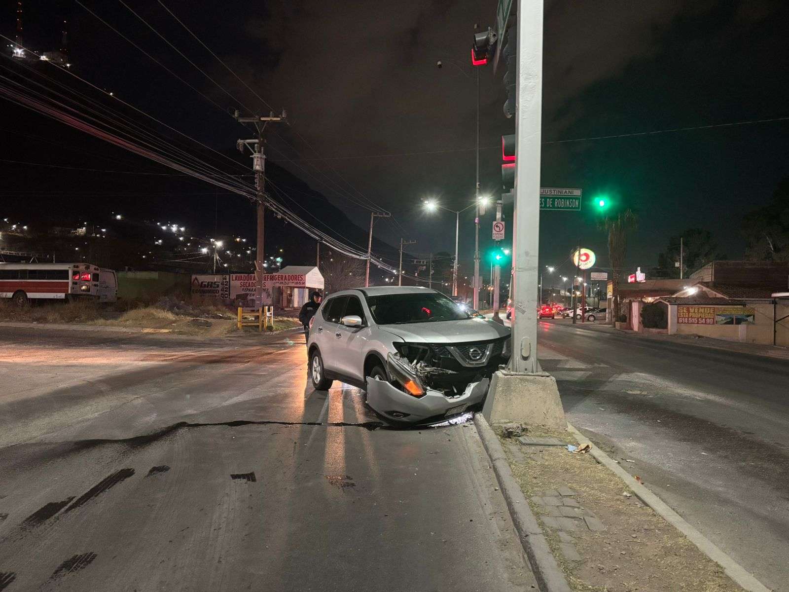 Chihuahua. - El conductor de una camioneta Nissan Rogue perdió el control del volante y se impactó contra un poste ubicado en el cruce de Cumbres de Robinson y el periférico Lombardo Toledano.