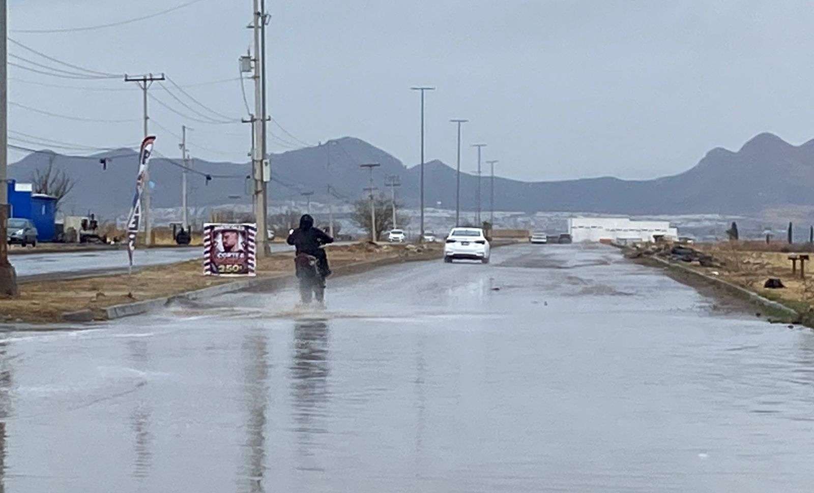 Chihuahua.– Las lluvias registradas la mañana de este lunes provocaron inundaciones en varios tramos de la avenida Equus, lo que generó complicaciones para automovilistas y motociclistas que circulan por la zona.