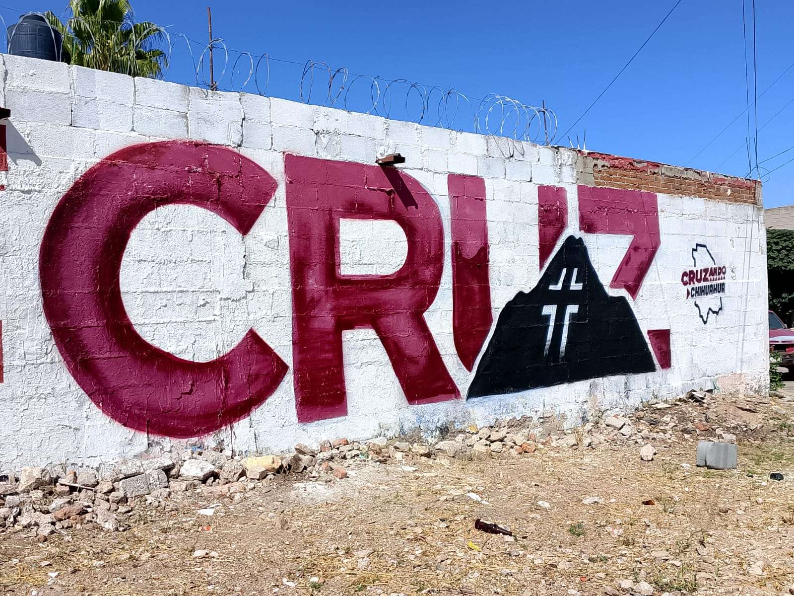 Chihuahua.- En la colonia Guadalupe, sobre la calle 40ª, apareció una barda con la leyenda "Cruzando Chihuahua", acompañada de una silueta del Cerro Grande al fondo, en alusión al alcalde de Ciudad Juárez, Cruz Pérez Cuéllar, quien ha sido mencionado como posible aspirante a la gubernatura del estado en 2027.