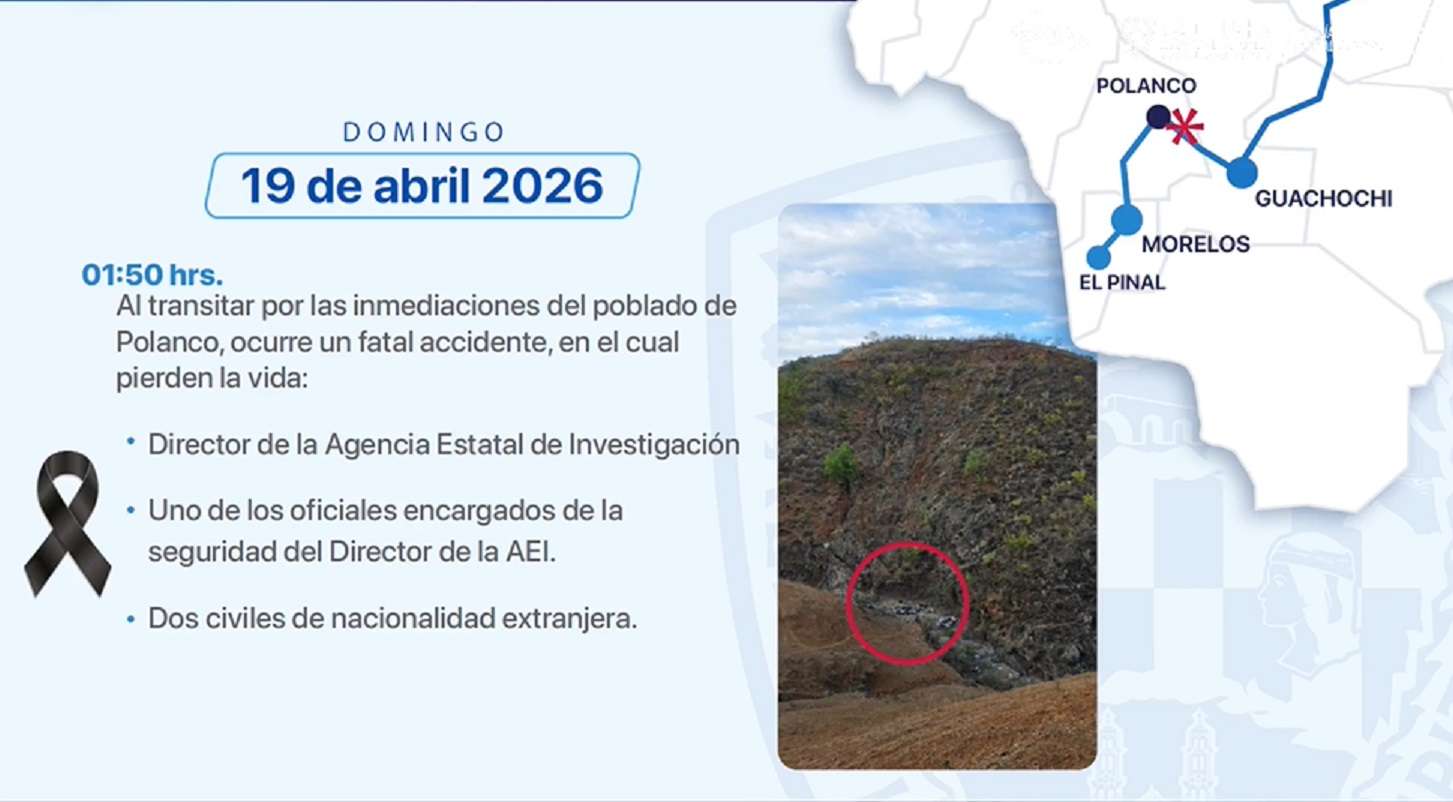 Fue durante la madrugada del domingo 19 de abril, cerca del poblado de Polanco, cuando la unidad del director cayó a un barranco debido a la poca visibilidad, provocando la muerte del mando, un escolta y dos de los extranjeros.
