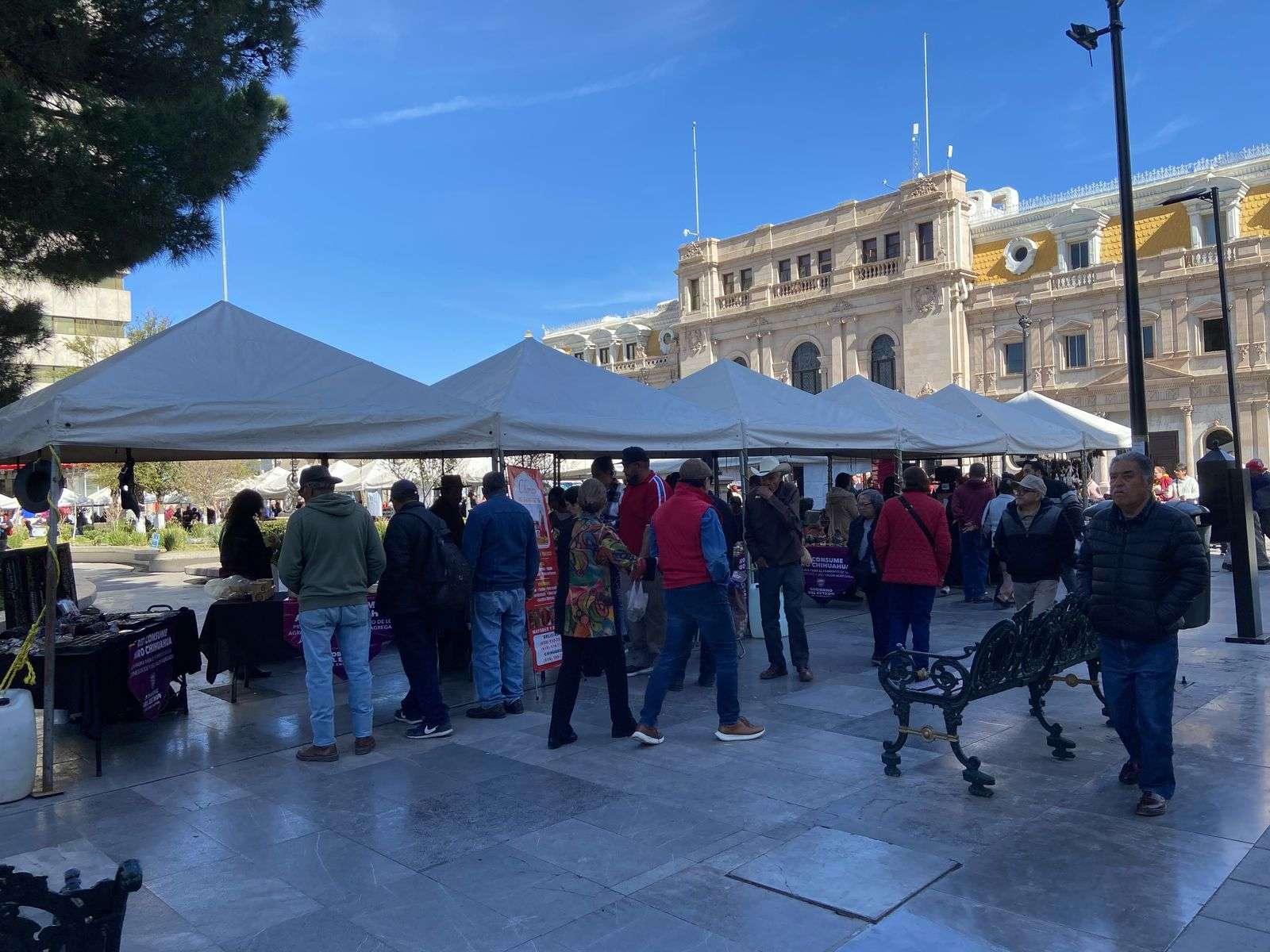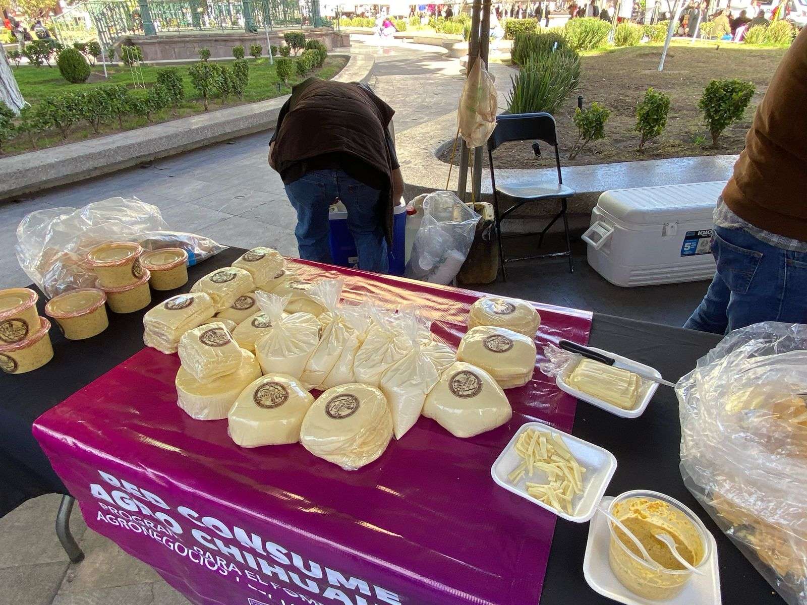 Chihuahua.- En la Plaza de Armas se instalaron alrededor de 50 puestos dentro de el evento Red Consume Agro Chihuahua donde productores de diferentes municipios del estado estuvieron ofreciendo sus productos.