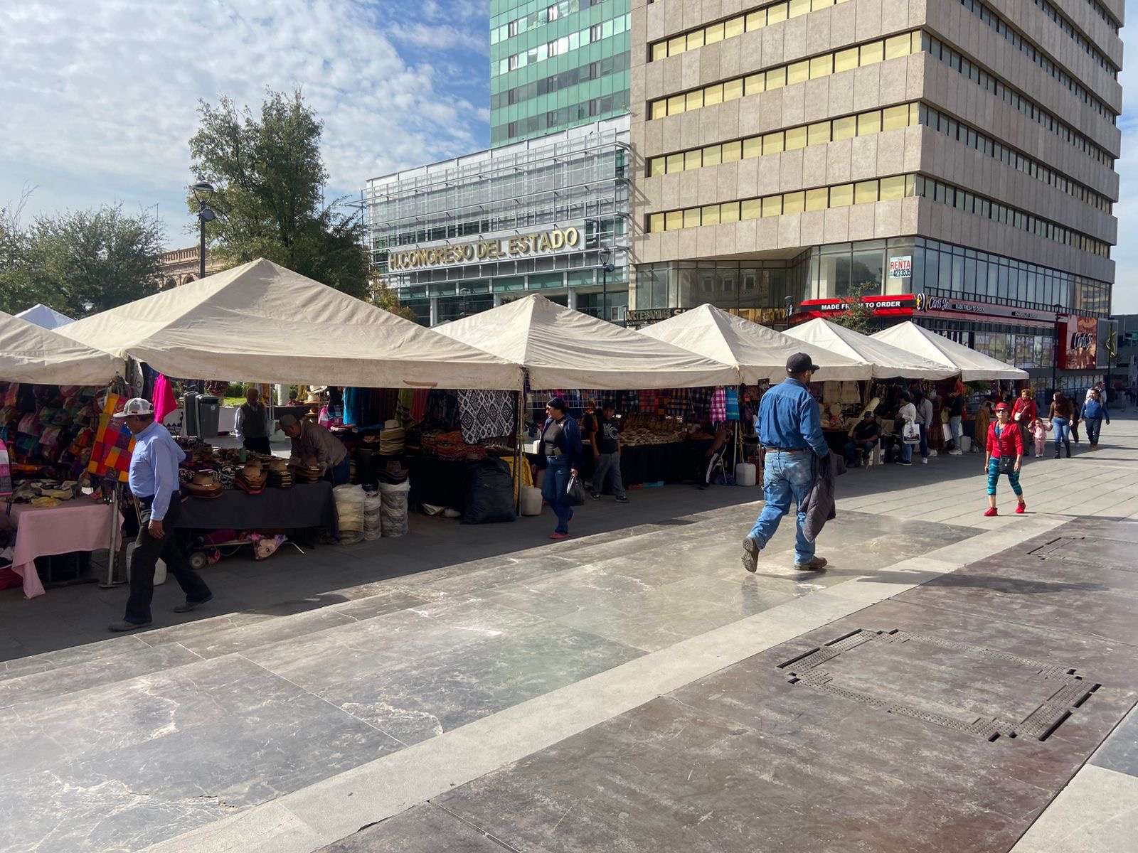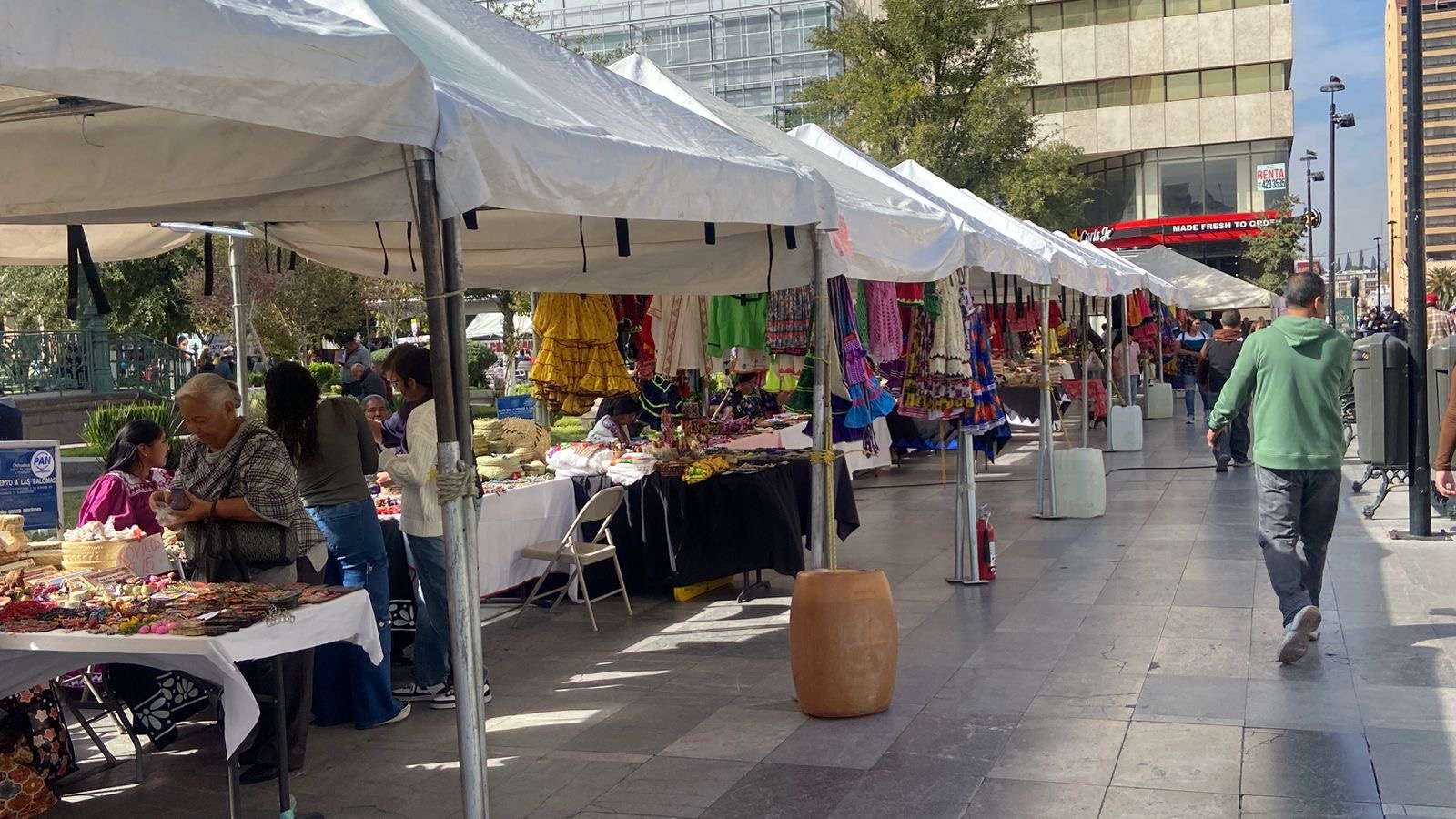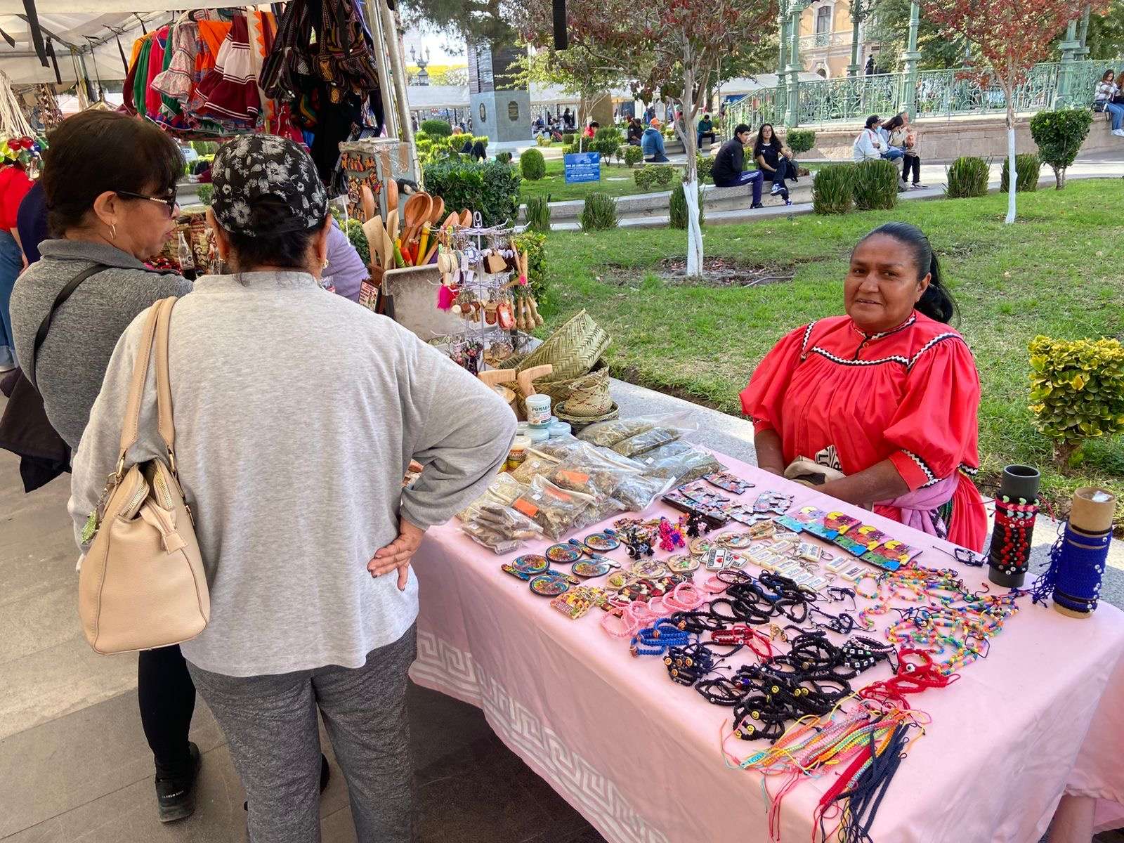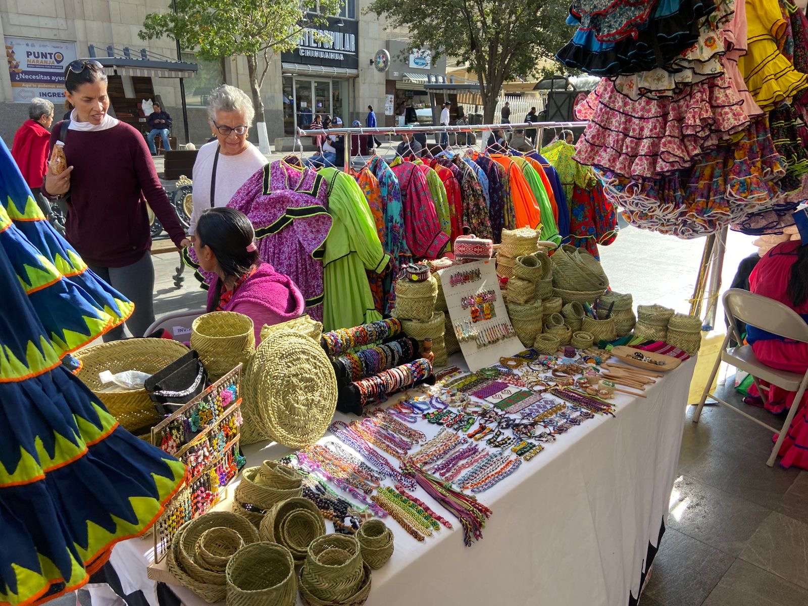Chihuahua.- En la Plaza de Armas se lleva a cabo la Expo Feria Artesanal, donde participan artesanos que ofrecen sus productos en un horario de 10:00 de la mañana a 9:00 de la noche.